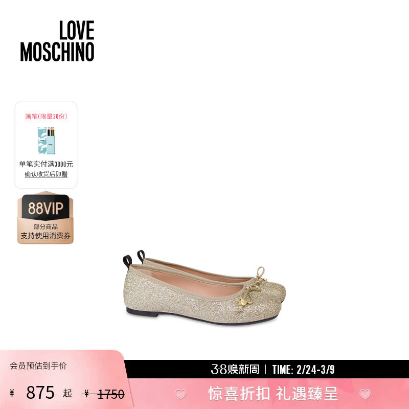 【礼物】Love Moschino 女士金色细闪平底玛丽珍芭蕾鞋