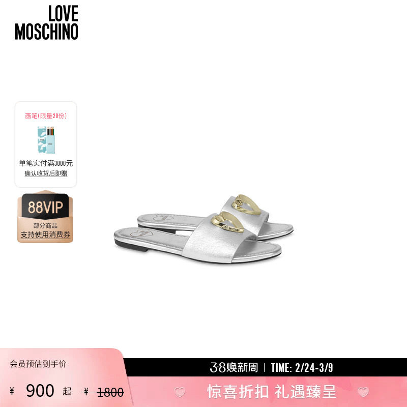 【礼物】Love Moschino 25春夏银色心形牛皮平底凉鞋