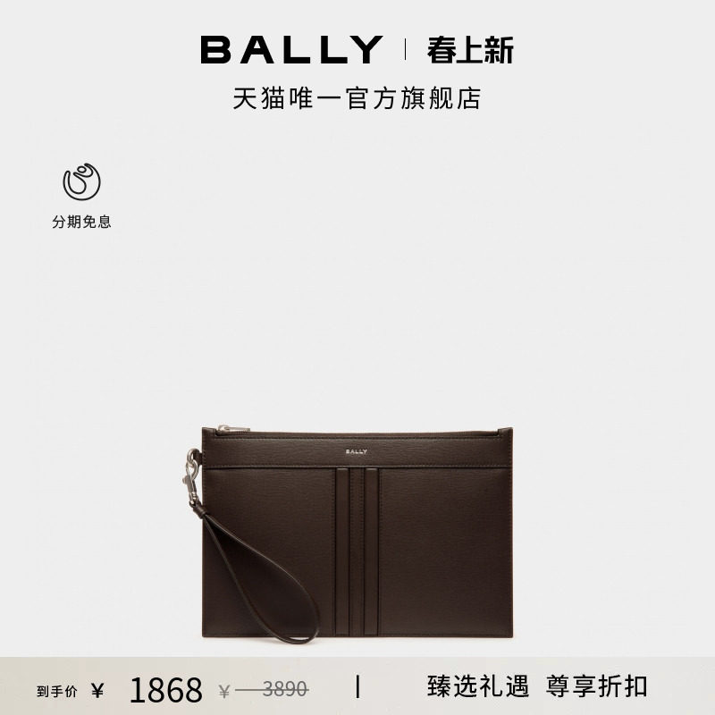 【尊享折扣】BALLY巴利乌木色牛皮革男士手袋6308874
