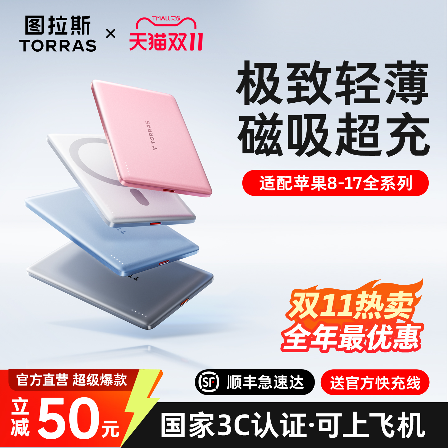图拉斯磁吸充电宝2025新款小冰片适用苹果17无线超薄便携3C认证可上飞机快充大容量专用移动电源官方正品小米