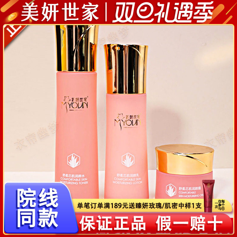 美妍世家化妆品正品舒柔芯肌安肌三件套艾格金妍送面膜【发单品】