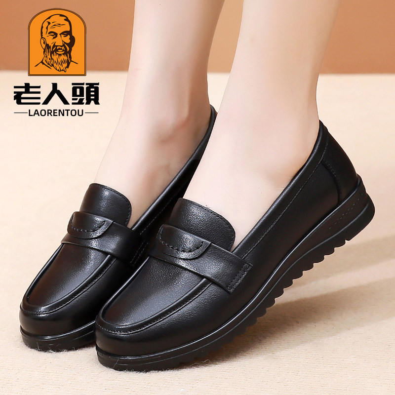 老人头头层牛皮单鞋女真皮浅口妈妈鞋春季软底魔术贴中老年奶奶鞋