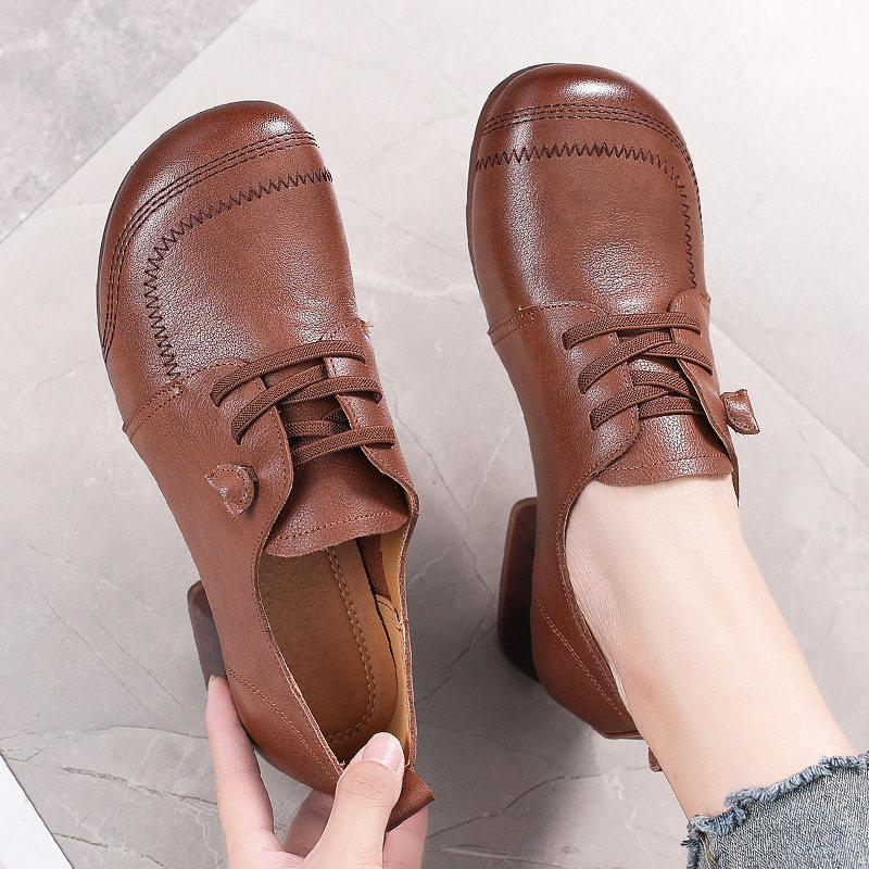 复古女鞋猪皮鞋垫圆头妈妈鞋春季新款牛筋底老人鞋一脚蹬防滑平底