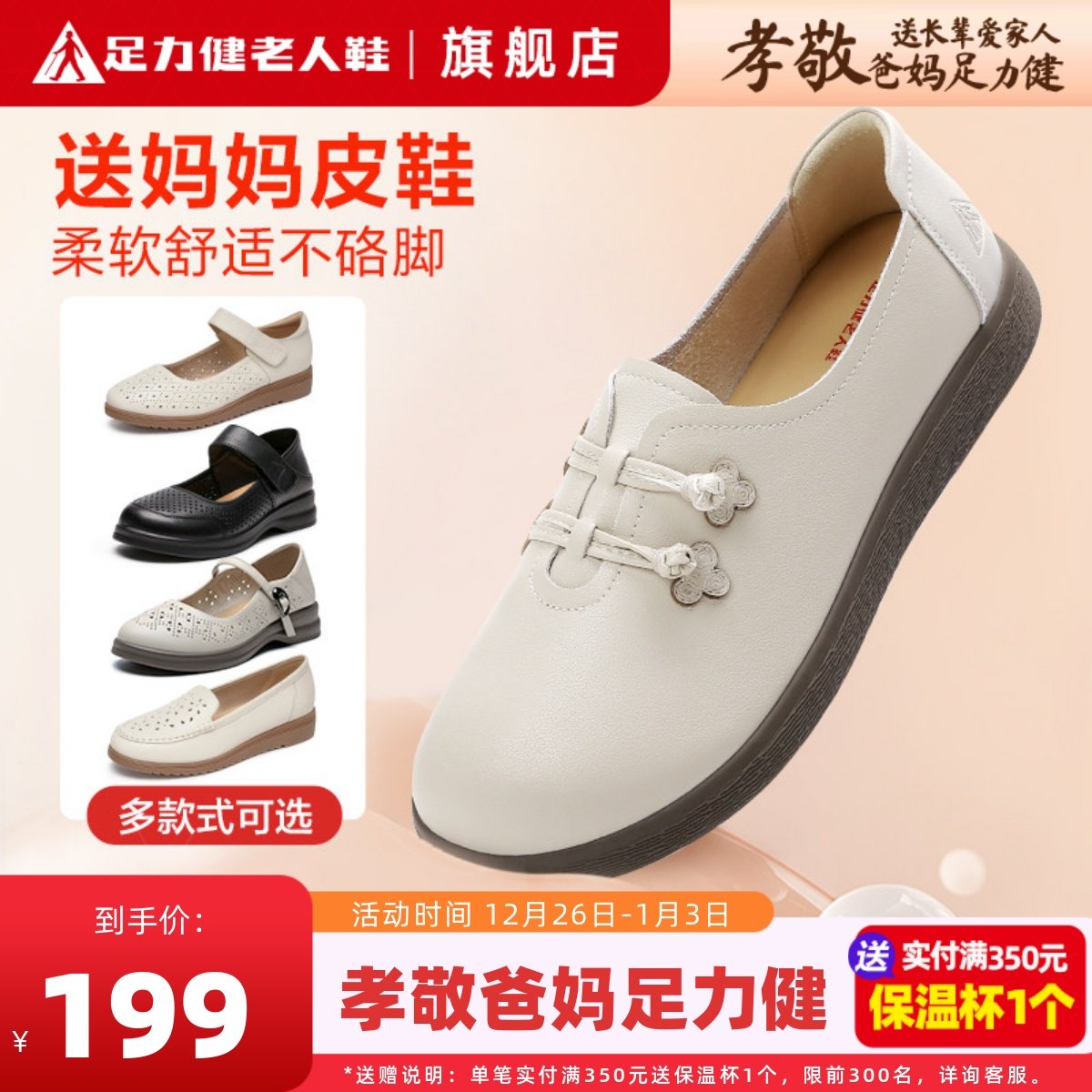 足力健女鞋官方旗舰店平底妈妈鞋春季中老年舒适不累脚奶奶一脚蹬