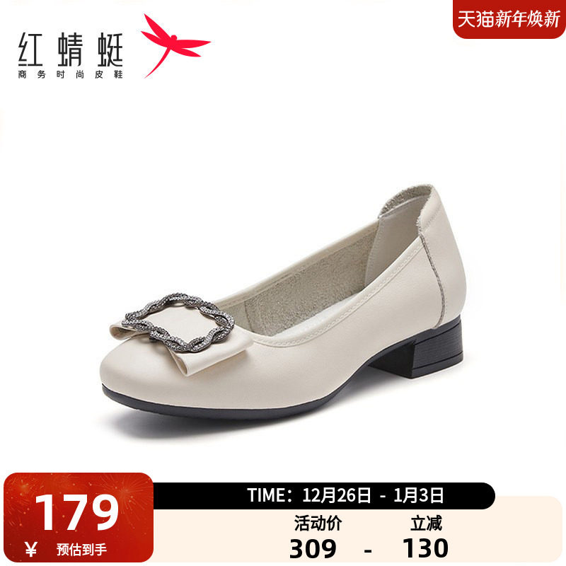 红蜻蜓妈妈鞋春季新款女鞋中老年鞋平底单鞋真皮软底皮鞋断码清仓