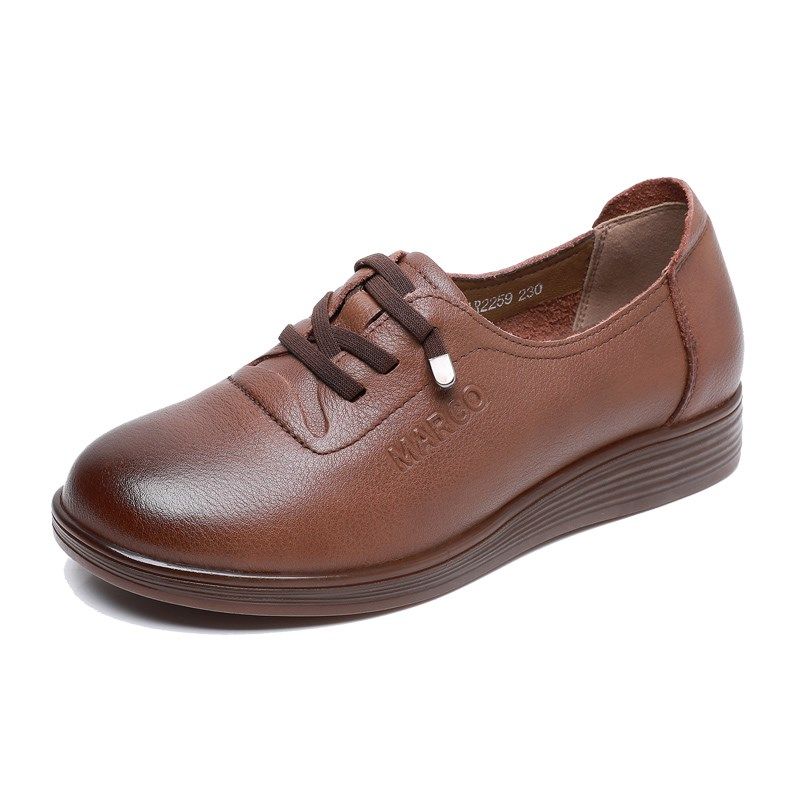 妈妈鞋春季春秋鞋新款软皮软底女鞋中老年皮鞋舒适浅口女单鞋坡跟
