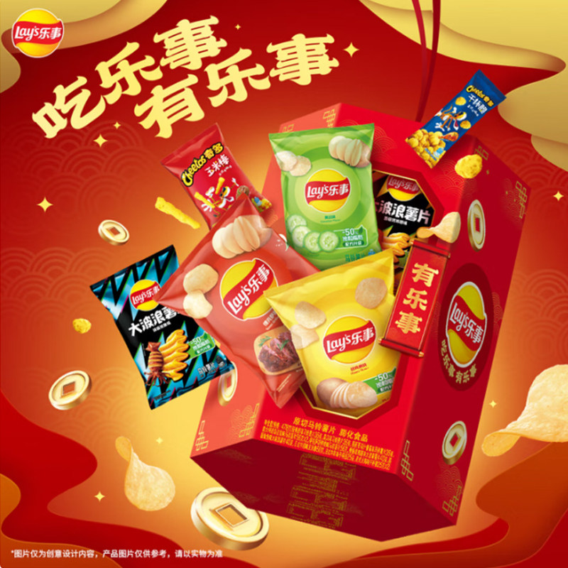 乐事Lay's薯片分享装宫灯礼盒478克功夫熊猫联名过新年零食大礼包