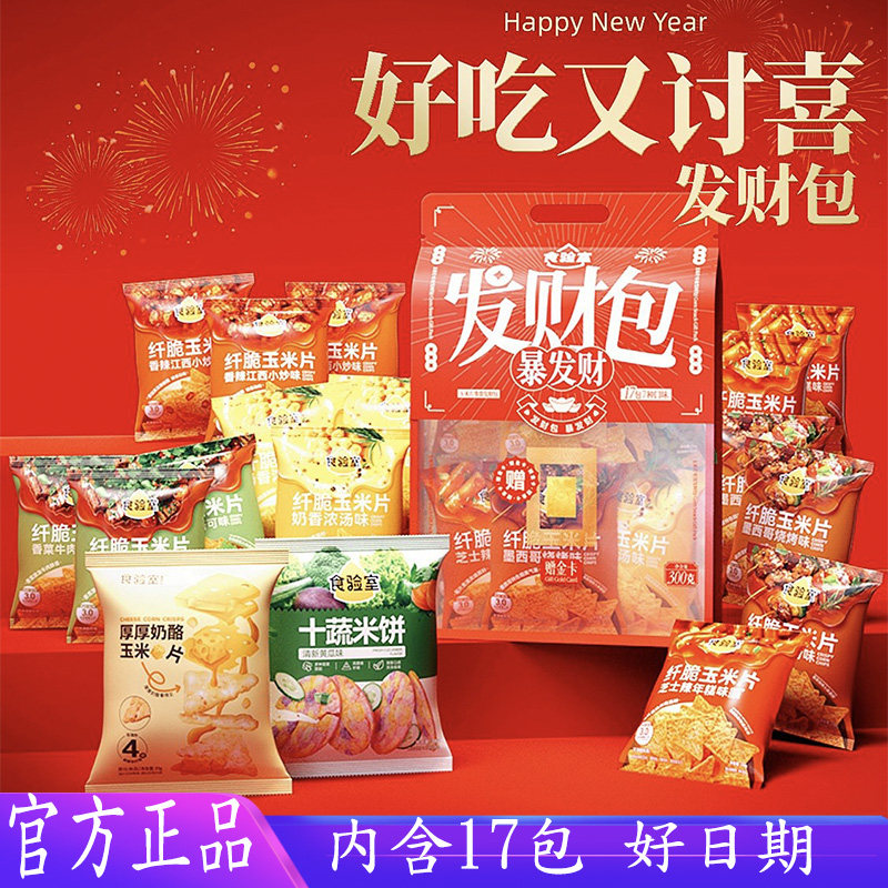 食验室零食发财包17件零食大礼包赠金卡超大巨型新年零食大礼包