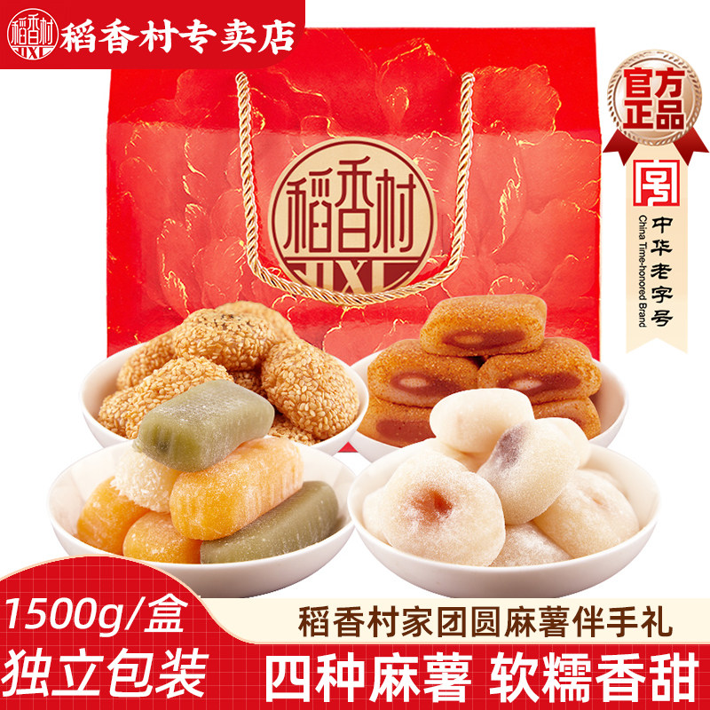 稻香村糕点礼盒1500g 驴打滚爆浆麻薯麻团羊羹新年零食大礼包
