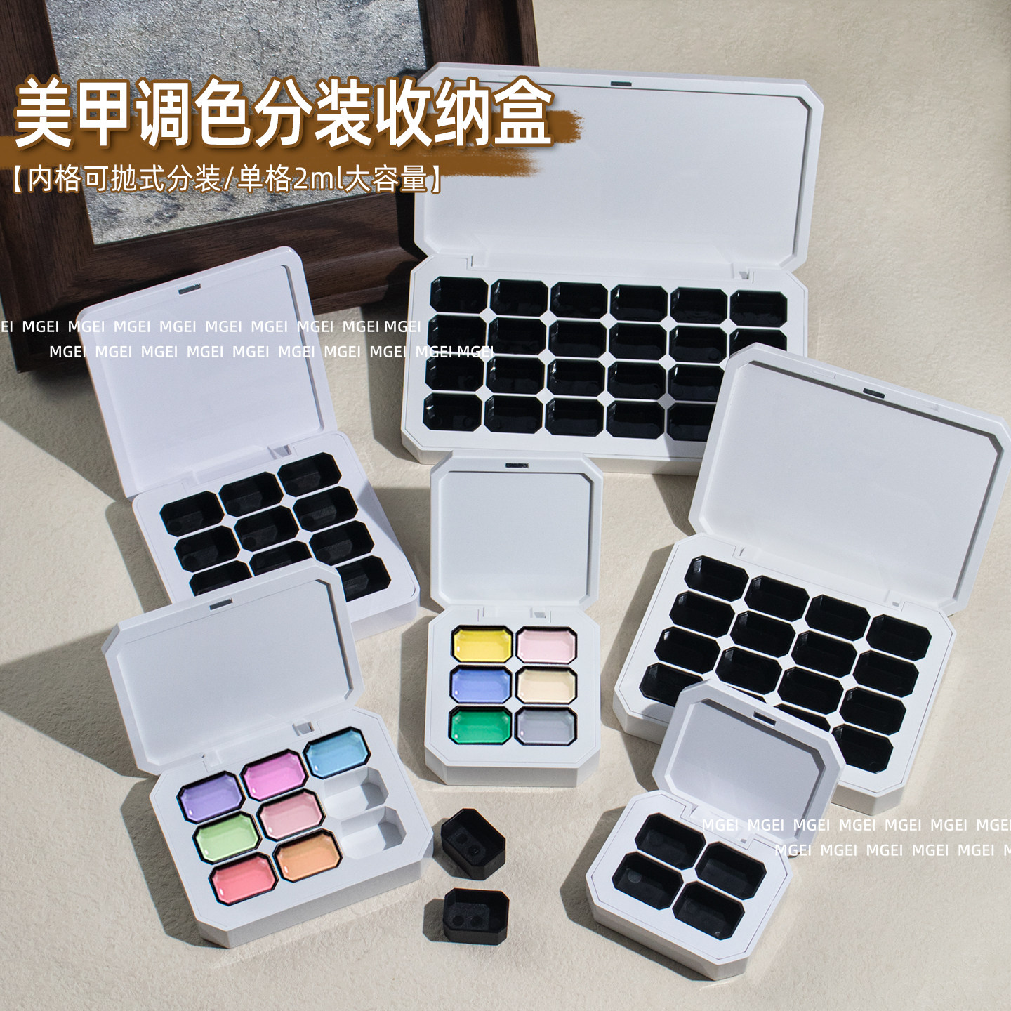 美甲自调色甲油胶分装盒12格四六九宫格避光水彩颜料拍拍胶收纳盒