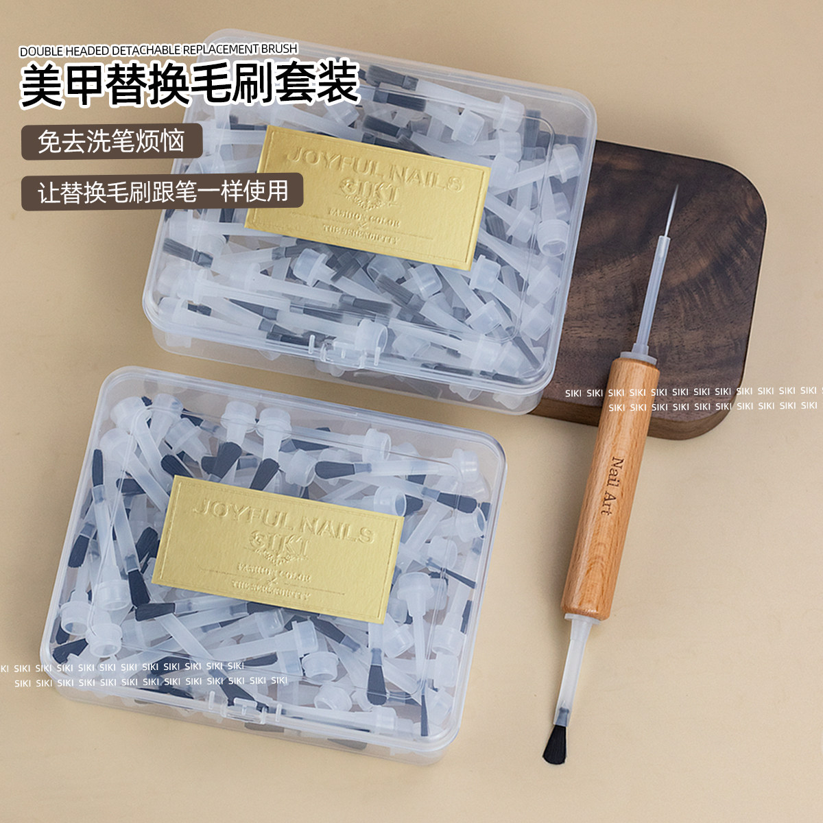 美甲替换刷头一次性指甲刷子甲油胶毛刷木杆双头笔平头圆弧光疗笔