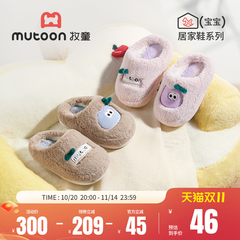牧童宝宝拖鞋女宝冬季新款小朋友苹果毛毛棉拖鞋加绒保暖室内鞋男
