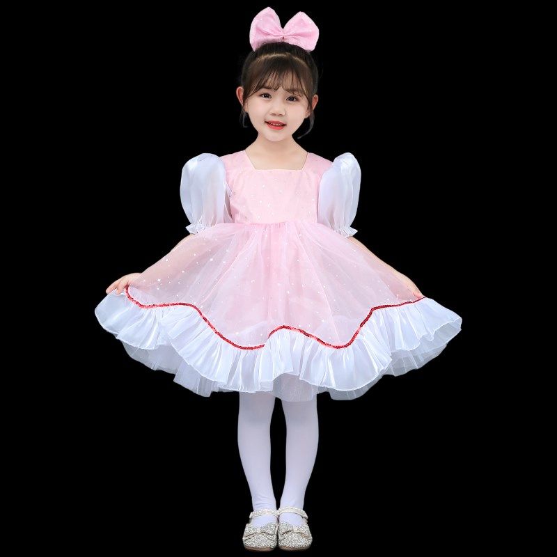 儿童舞蹈服女童蓬蓬裙幼儿园演出服可爱粉色公主连衣裙纱裙表演服