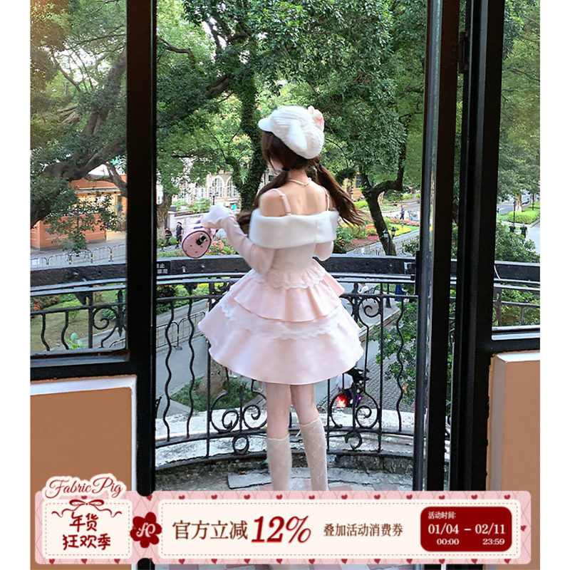 心愿小兔秋冬新款洛丽塔重工lolita斗篷蝴蝶结粉色公主连衣裙套装