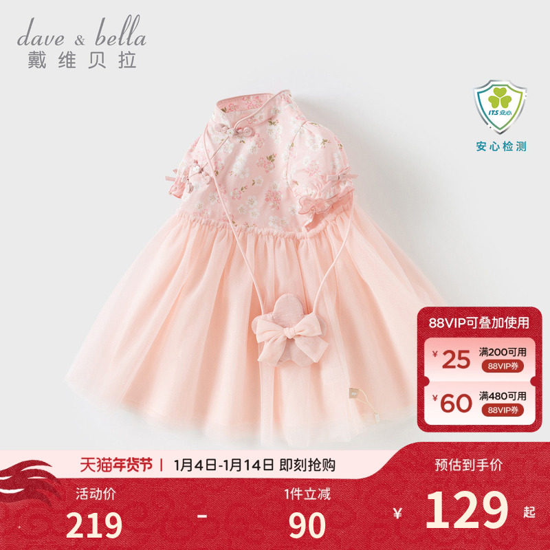 戴维贝拉儿童裙子2026夏装新款女童国风汉服连衣裙宝宝粉色公主裙
