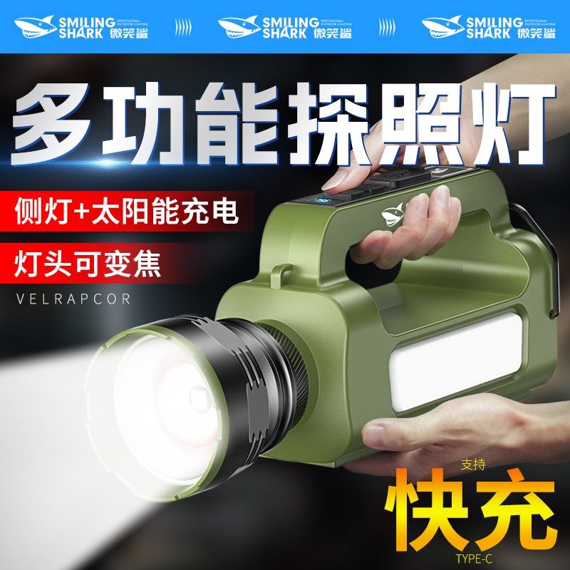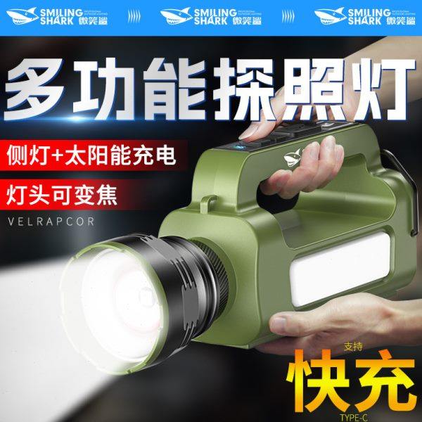 强光手提探照灯户外超亮太阳能充电多功能手电筒可变焦长续航远射
