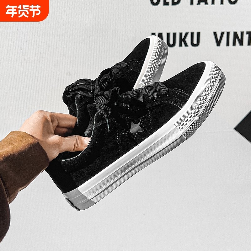 2025年韩国ulzzang街拍经典星星帆布鞋女情侣简约百搭绒面运动鞋