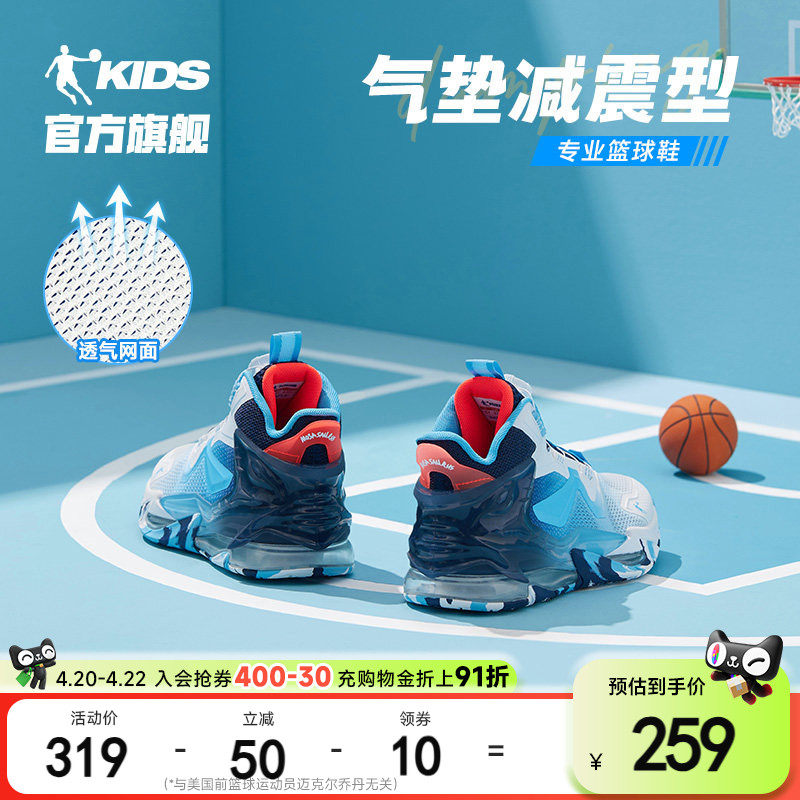 乔丹儿童篮球鞋旋钮扣透气2026夏季新款青少年气垫减震男童运动鞋