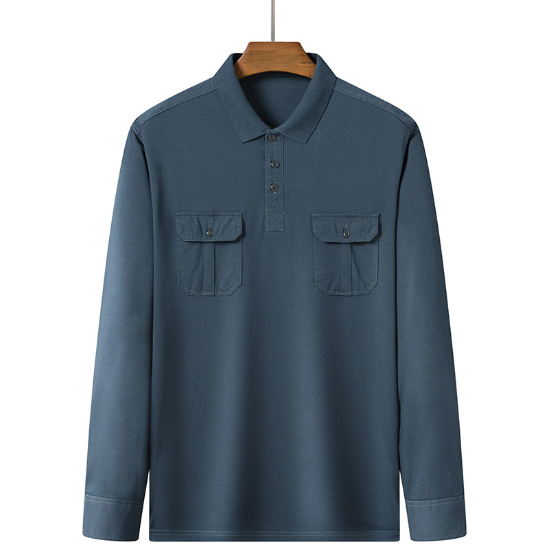 春秋款男装长袖T恤中老年棉类混纺男士秋衣打底衫透气纯色翻领t恤