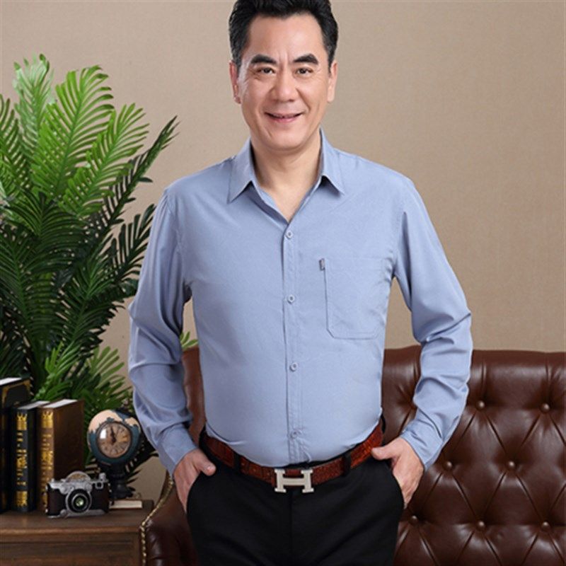 爸爸纯棉长袖衬衫中老年人男装秋装衬衣中年老爸爷爷寸衫老人衣服