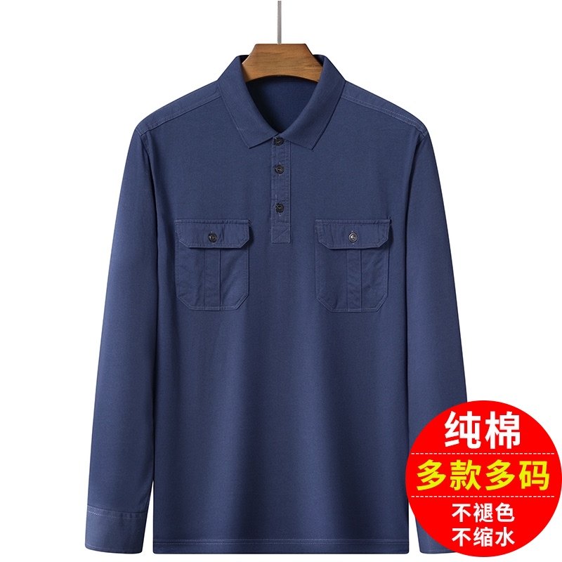 爸爸纯棉长袖t恤男翻领春秋季新款中老年男装爷爷秋装上衣Polo衫