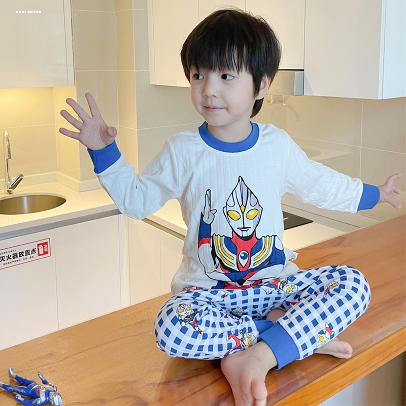 男童睡衣春秋季纯棉儿童长袖男孩7-8中9大童11岁奥特13家居服套装