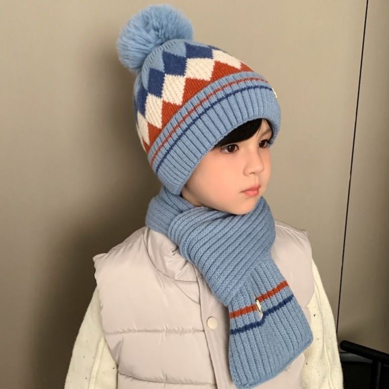 8中大童毛线帽秋冬儿童7-10保暖加厚帽子围巾两件套装男童3-12岁9