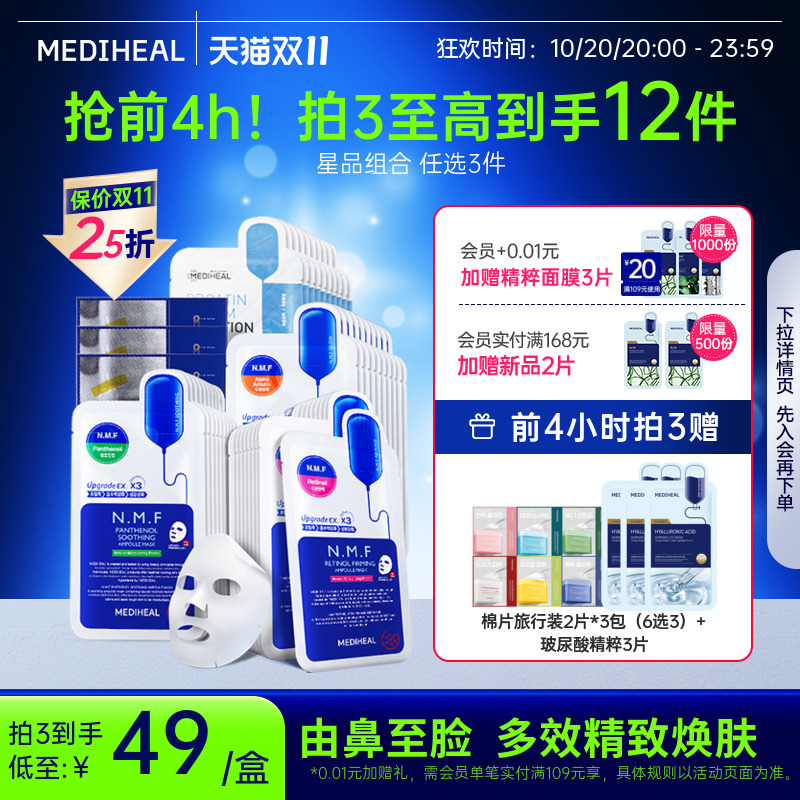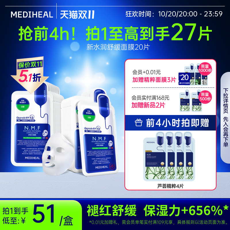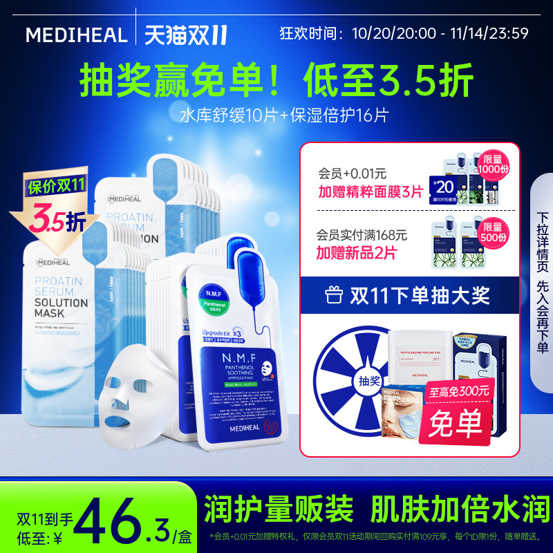韩国mediheal美迪惠尔面膜水库舒缓补水NMF可莱丝春夏修护玻尿酸