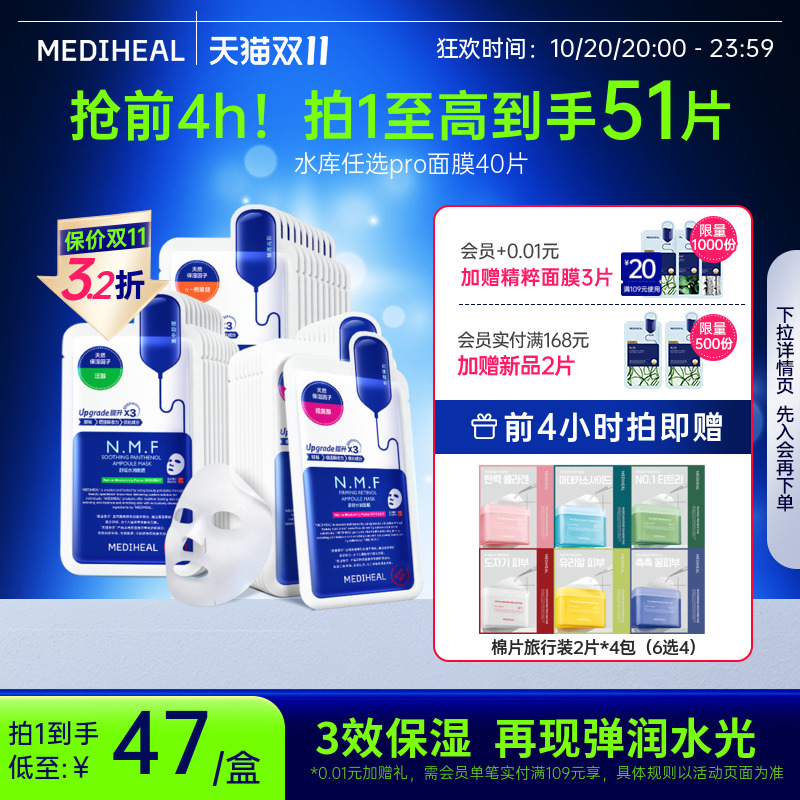 韩国MEDIHEAL美迪惠尔可莱丝NMF水库面膜贴补水保湿修护收缩毛孔