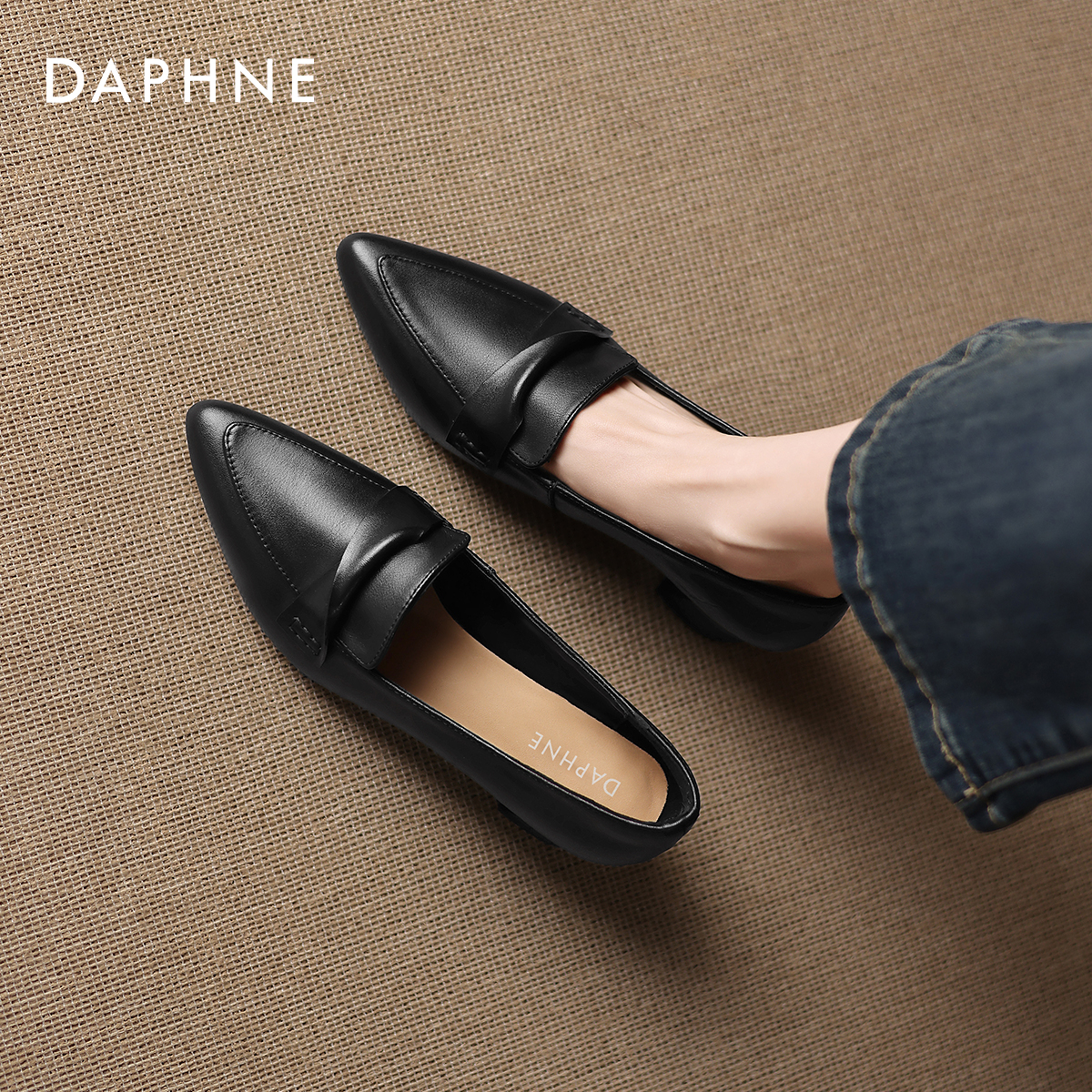 达芙妮尖头浅口单鞋女2025新款秋季一脚蹬女鞋粗跟百搭高跟皮鞋女