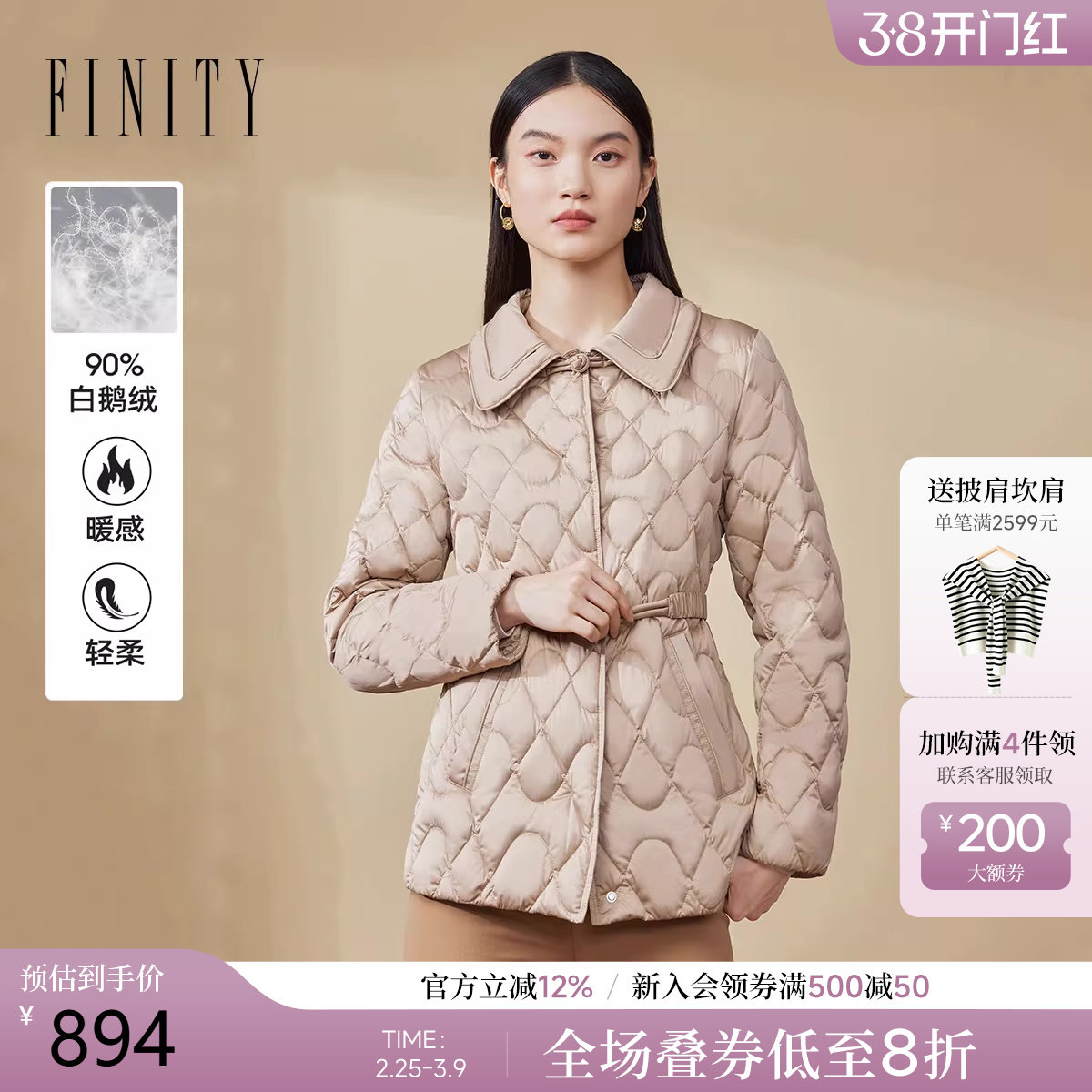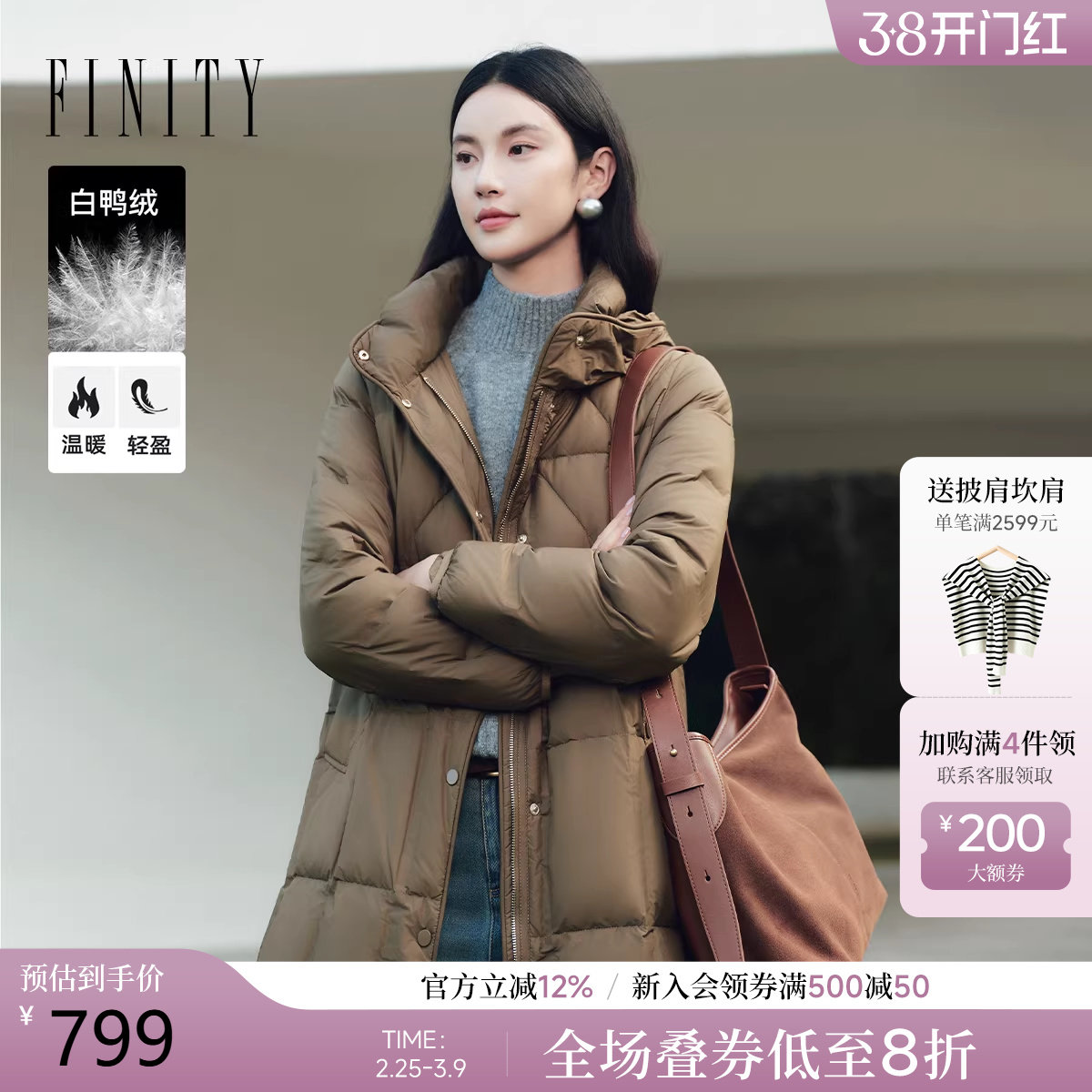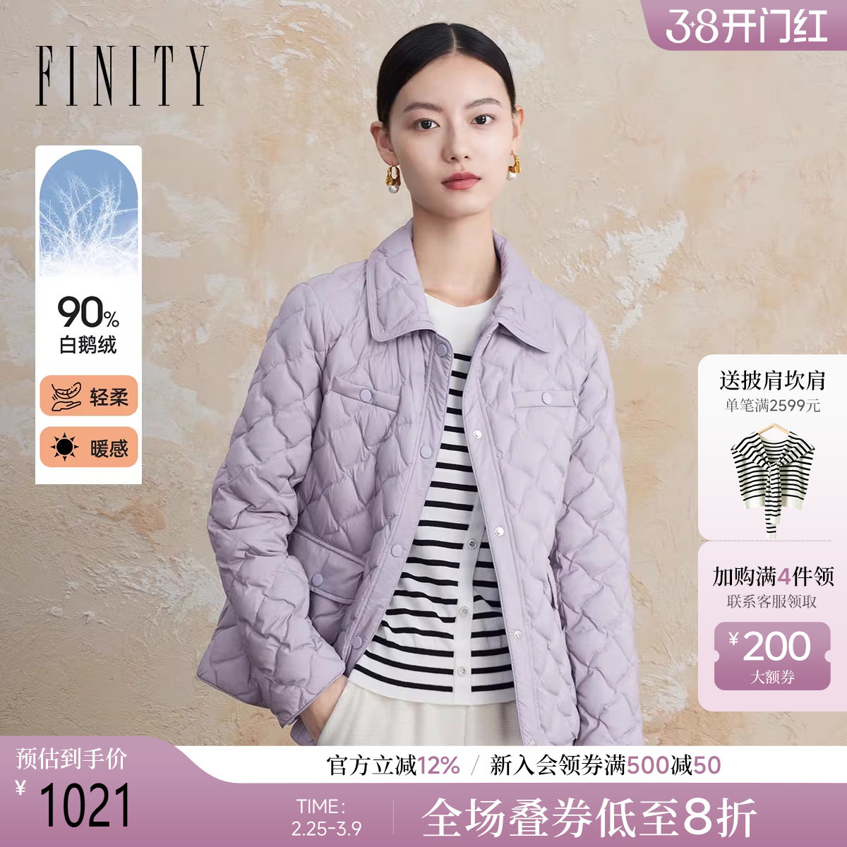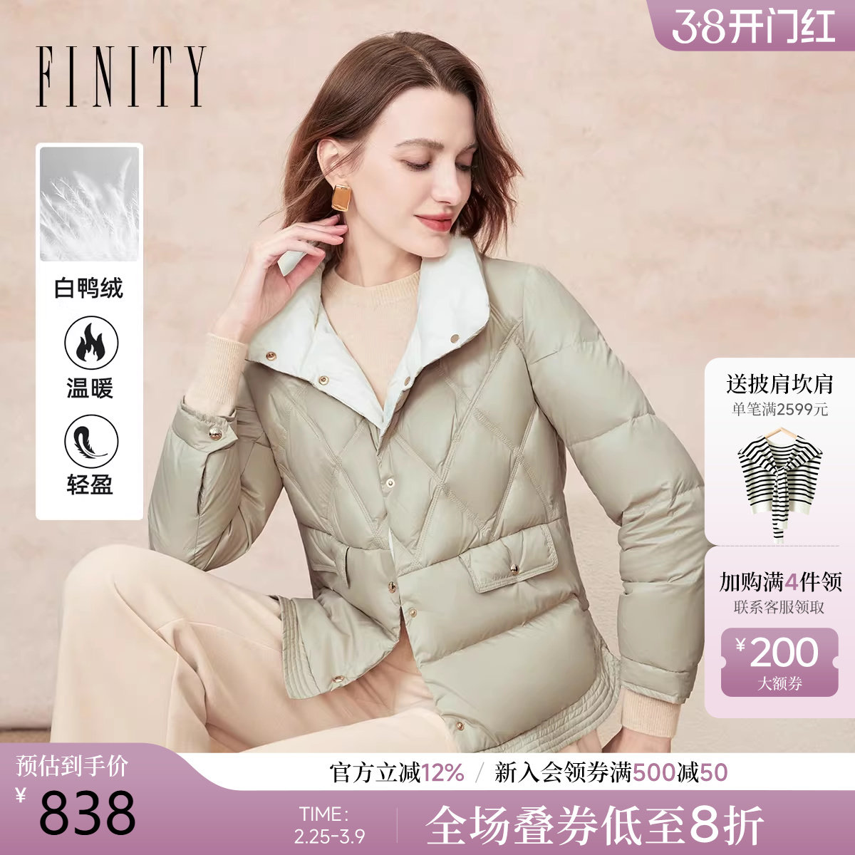 - 艾莱依薄款羽绒服女