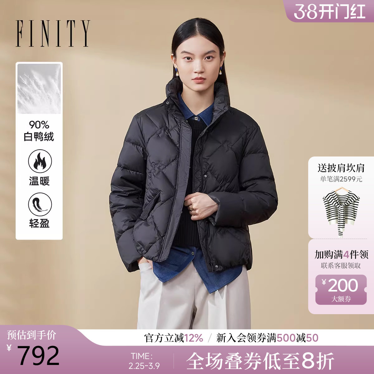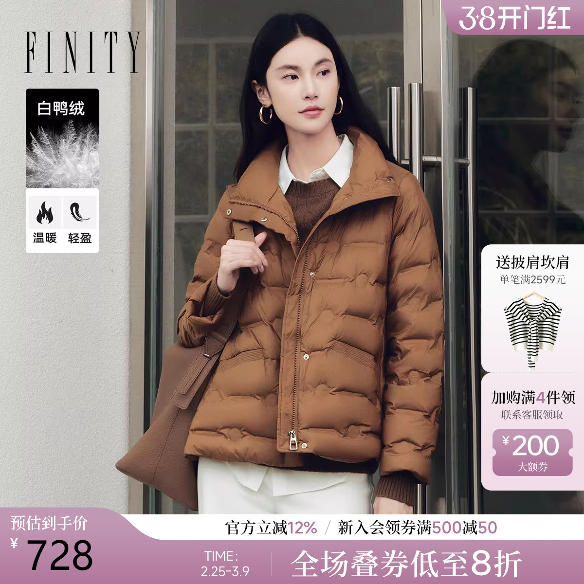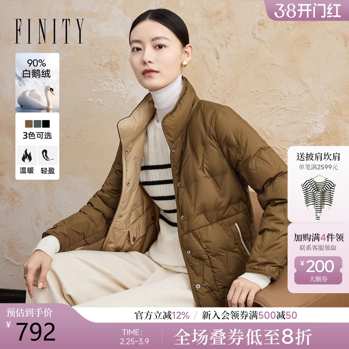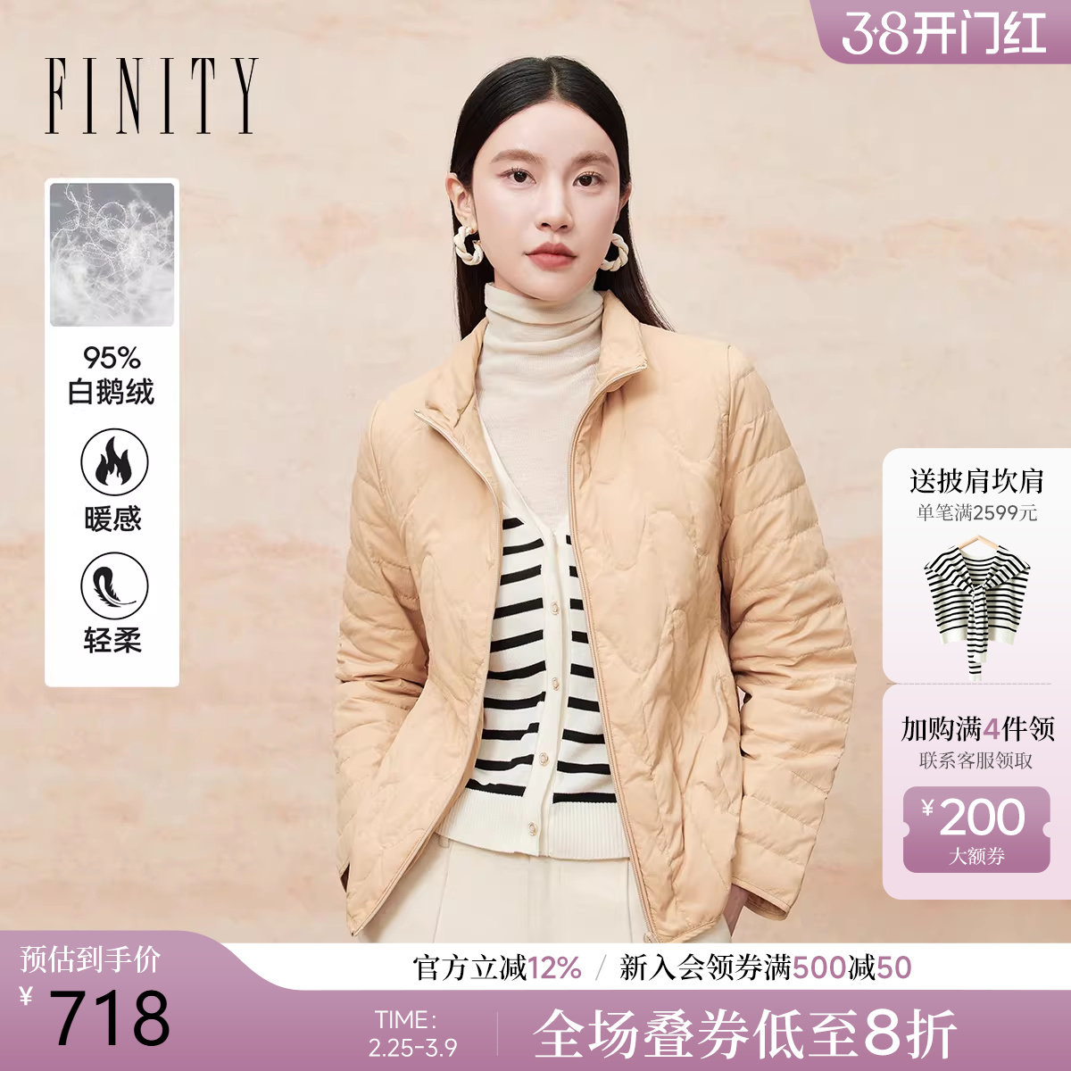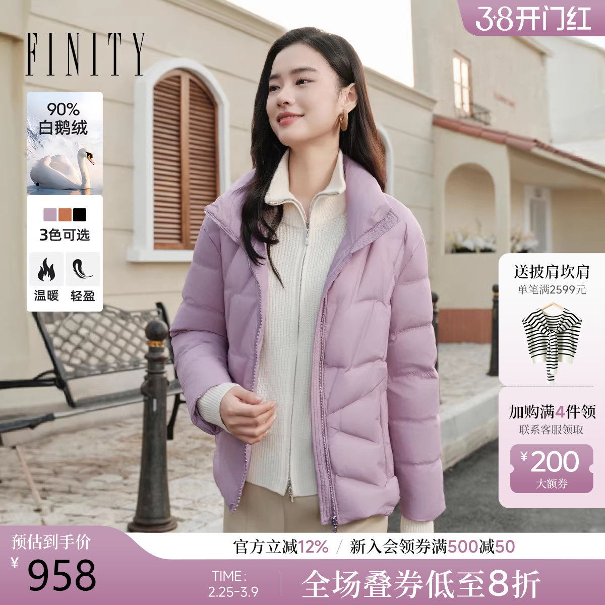 - 艾莱依薄款羽绒服女