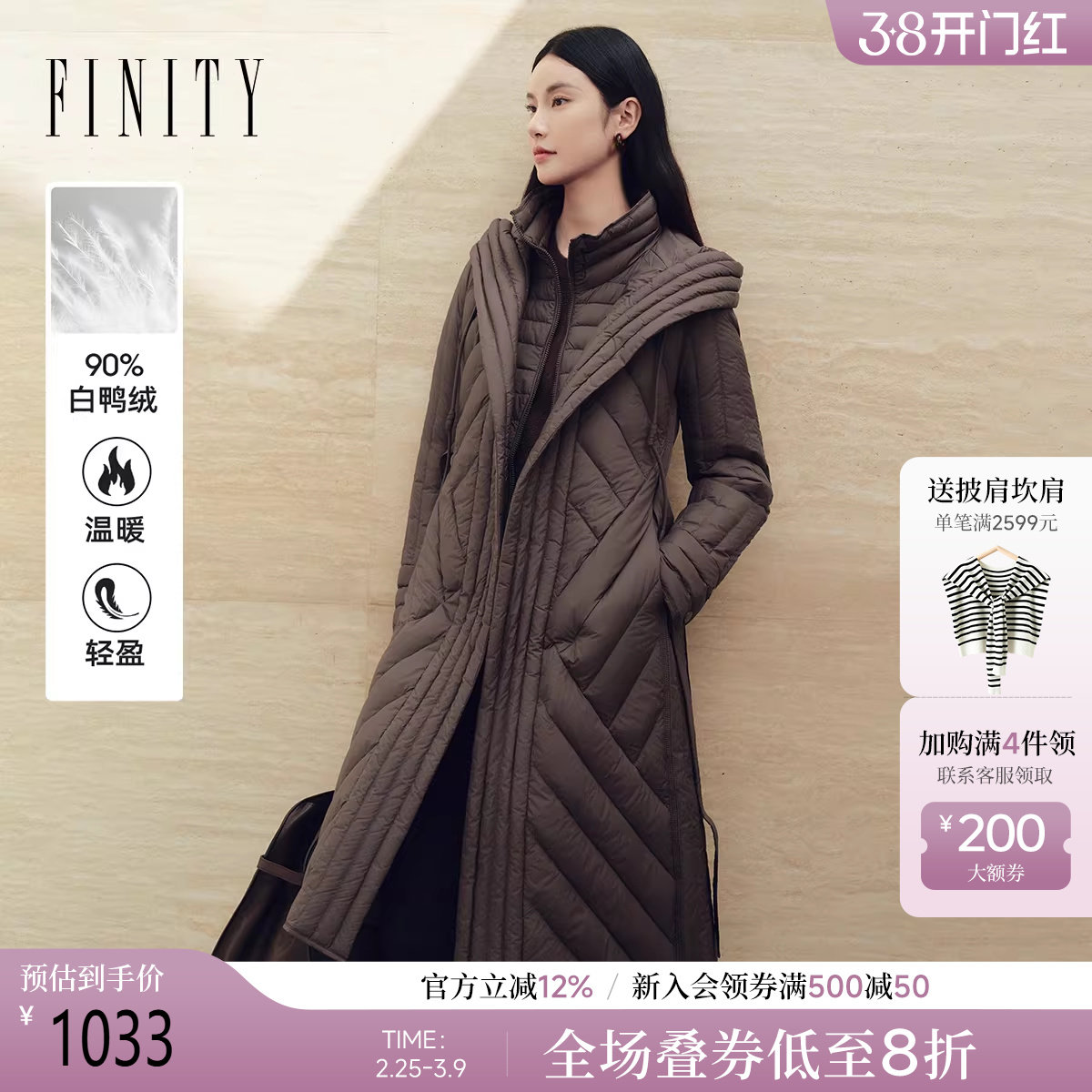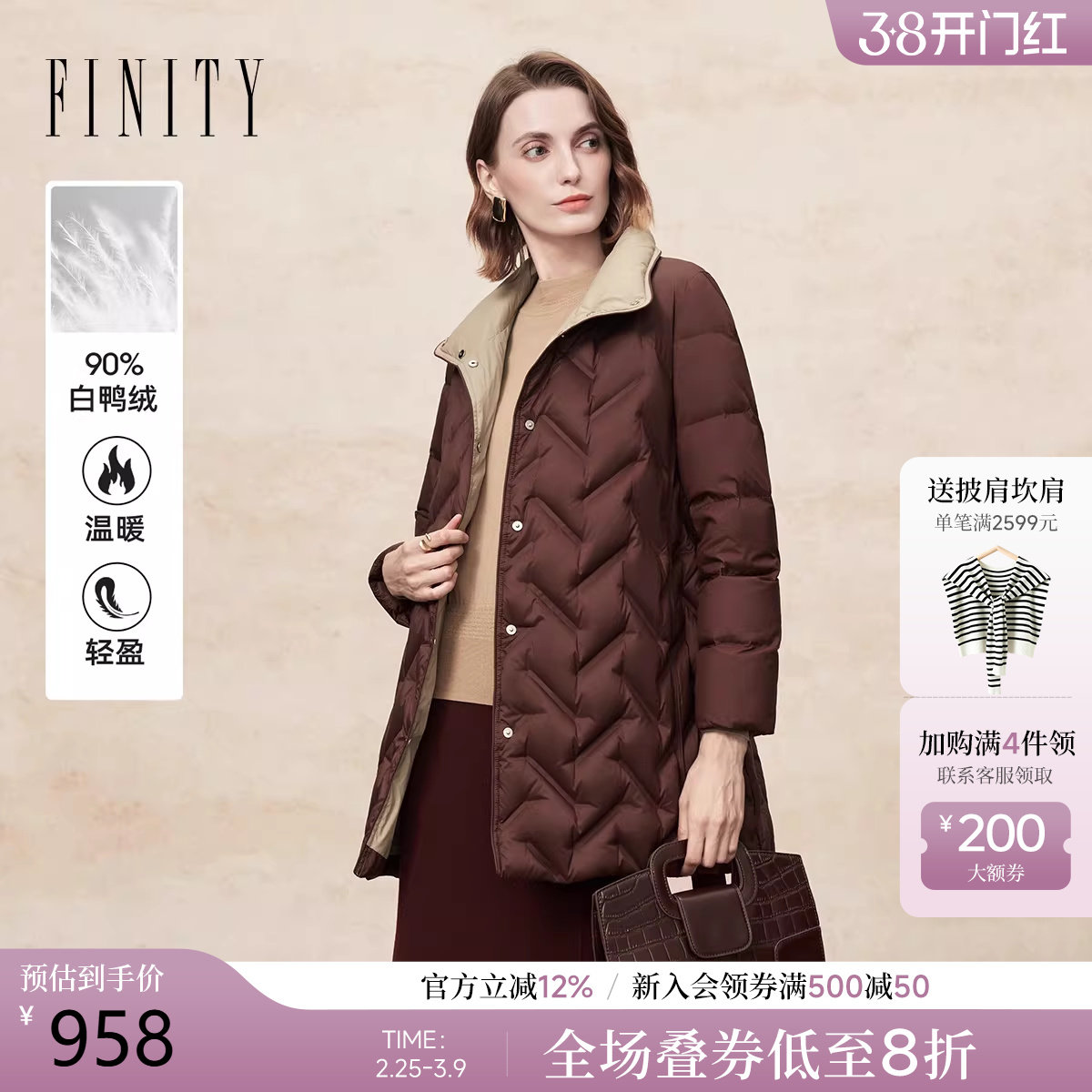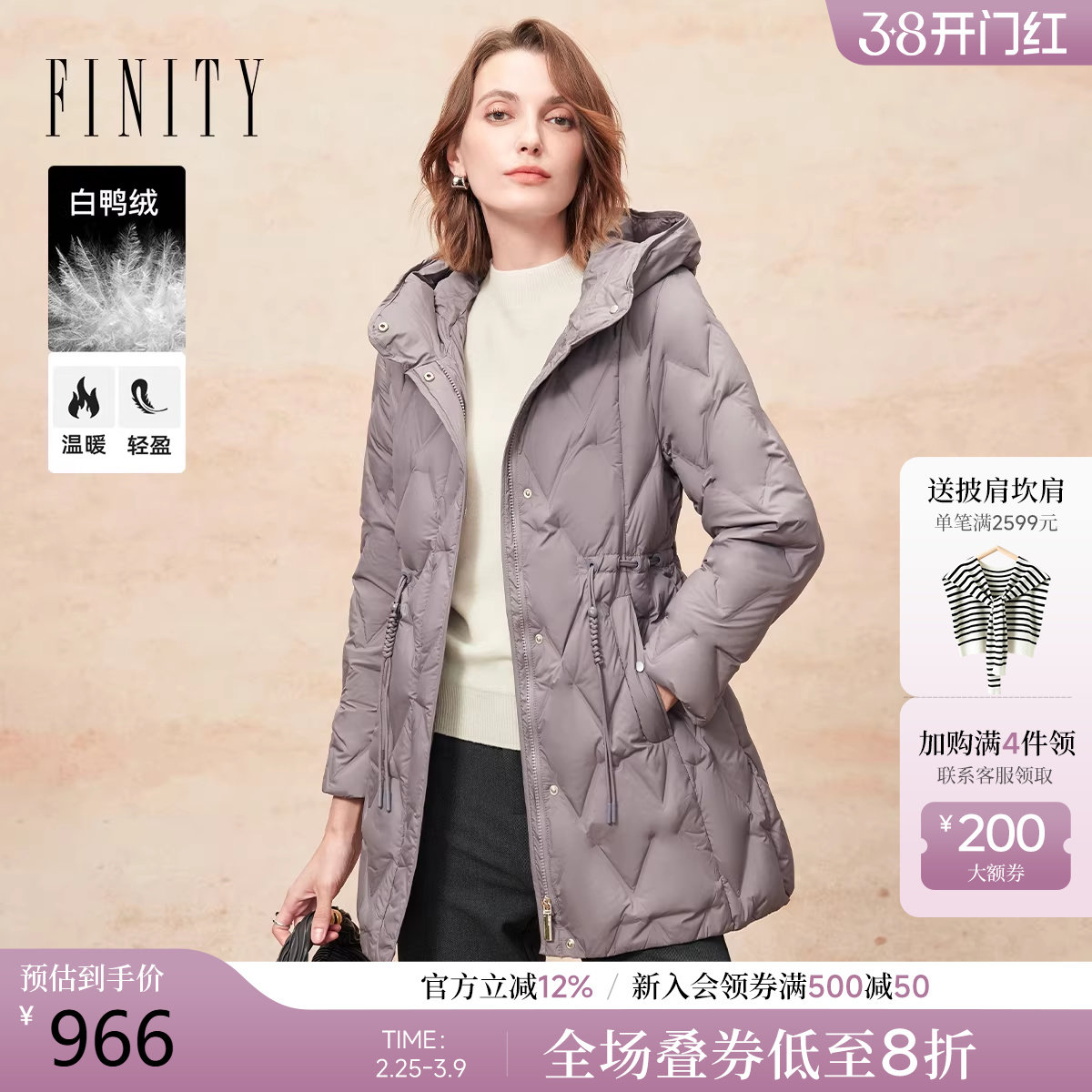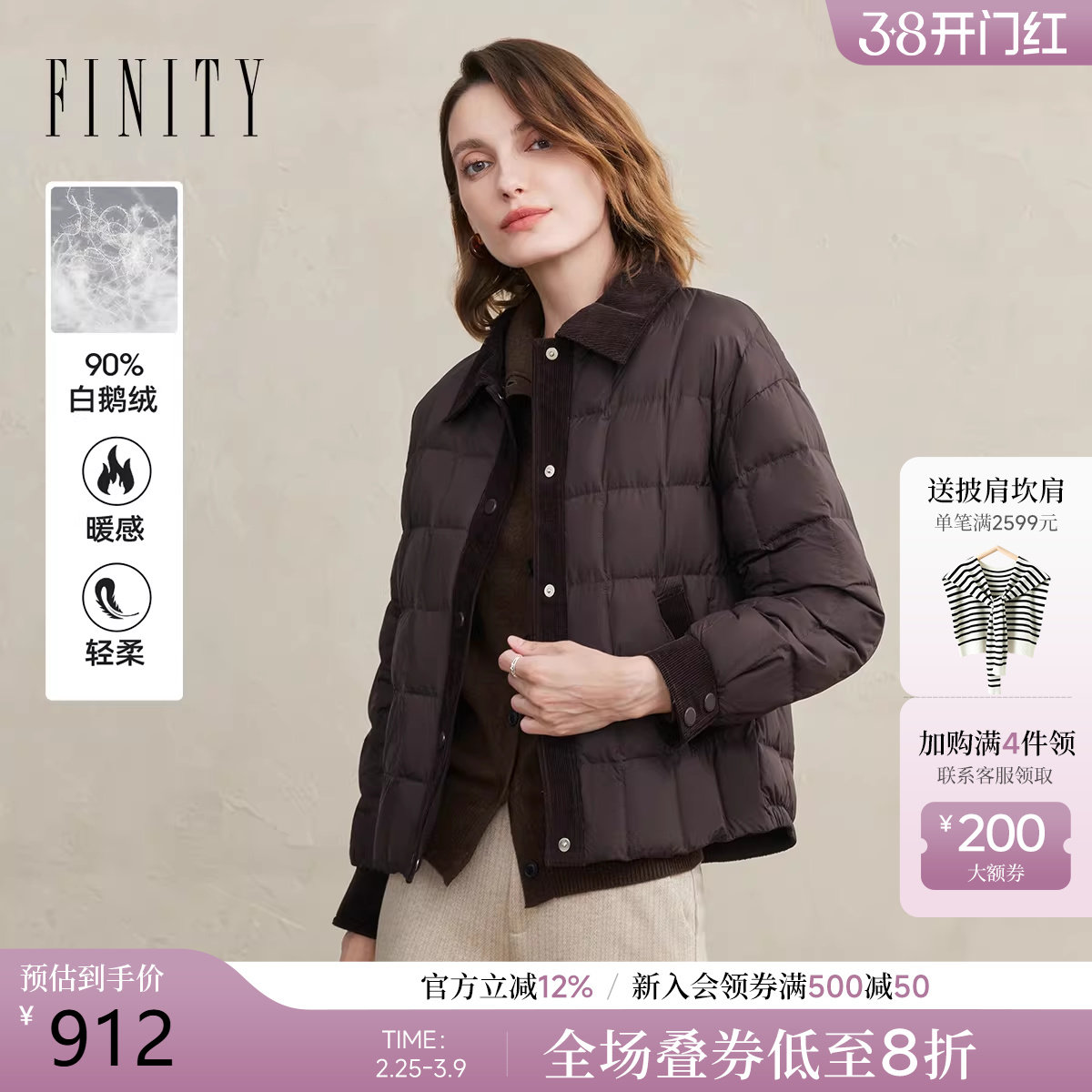 - 艾莱依薄款羽绒服女