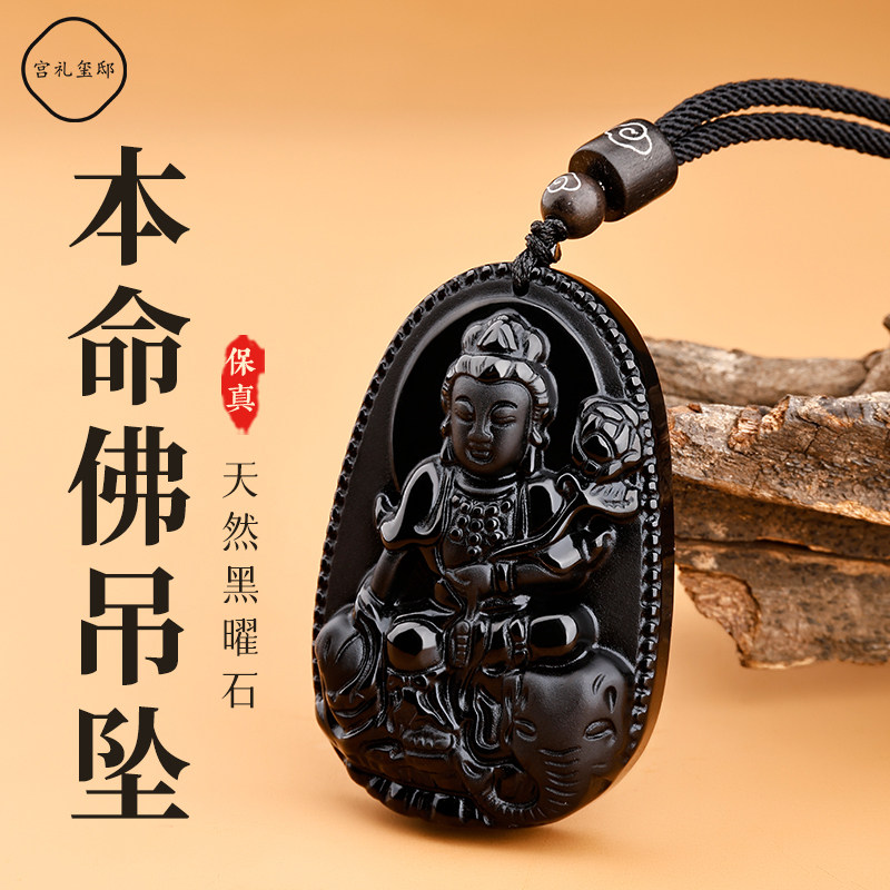 天然黑曜石本命佛吊坠冰种普贤菩萨十二生肖守护神大势至项链男女
