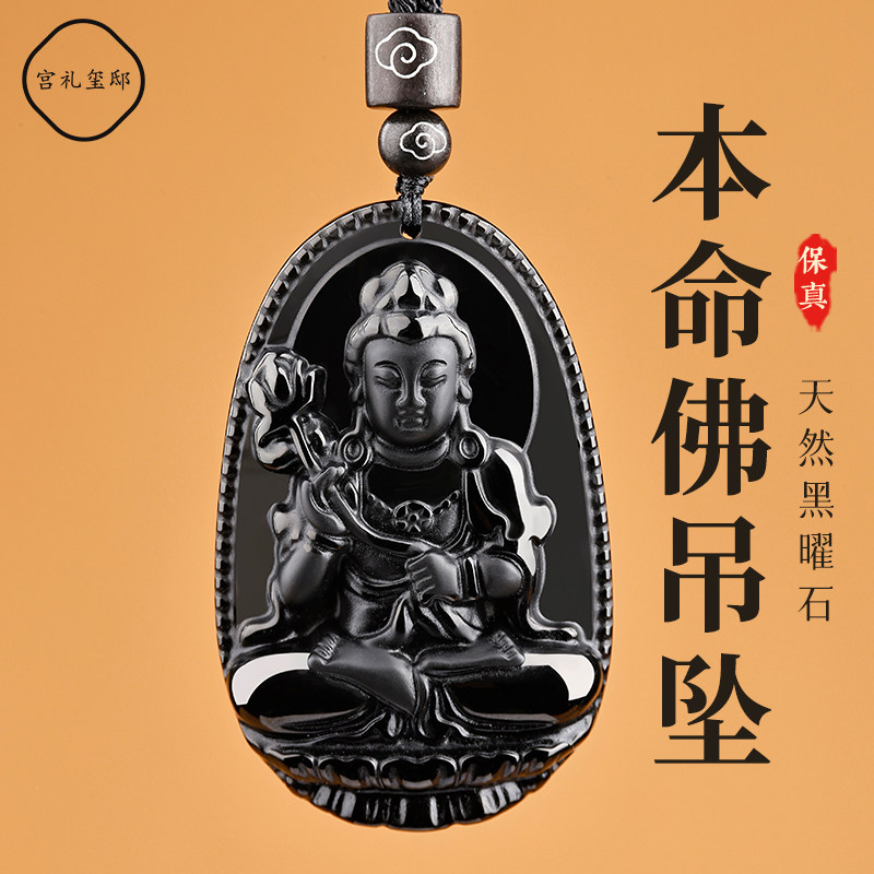 天然冰种黑曜石本命佛吊坠十二生肖八大守护神男项链女毛衣链挂坠