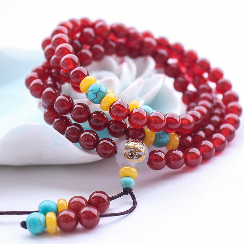 极速黑曜石手链红玛瑙水晶108 B生肖守护神本命佛男女情侣多圈手