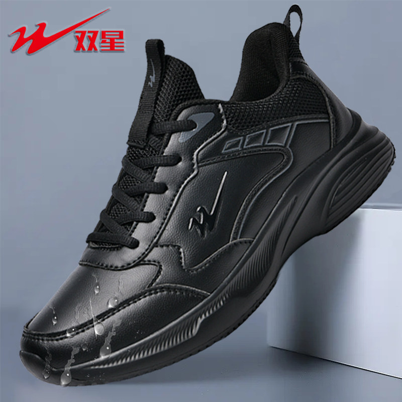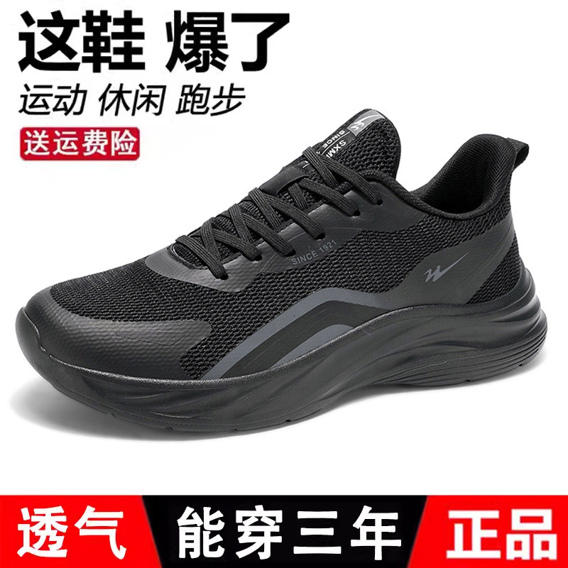 双星鞋子男式正品运动鞋新款男士官方黑色休闲防滑中年爸爸跑步鞋