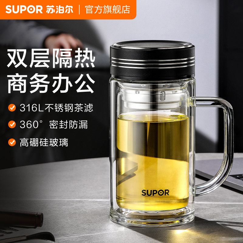 苏泊尔玻璃水杯男士泡茶杯男款高硼硅双层高档新款商务大容量杯子