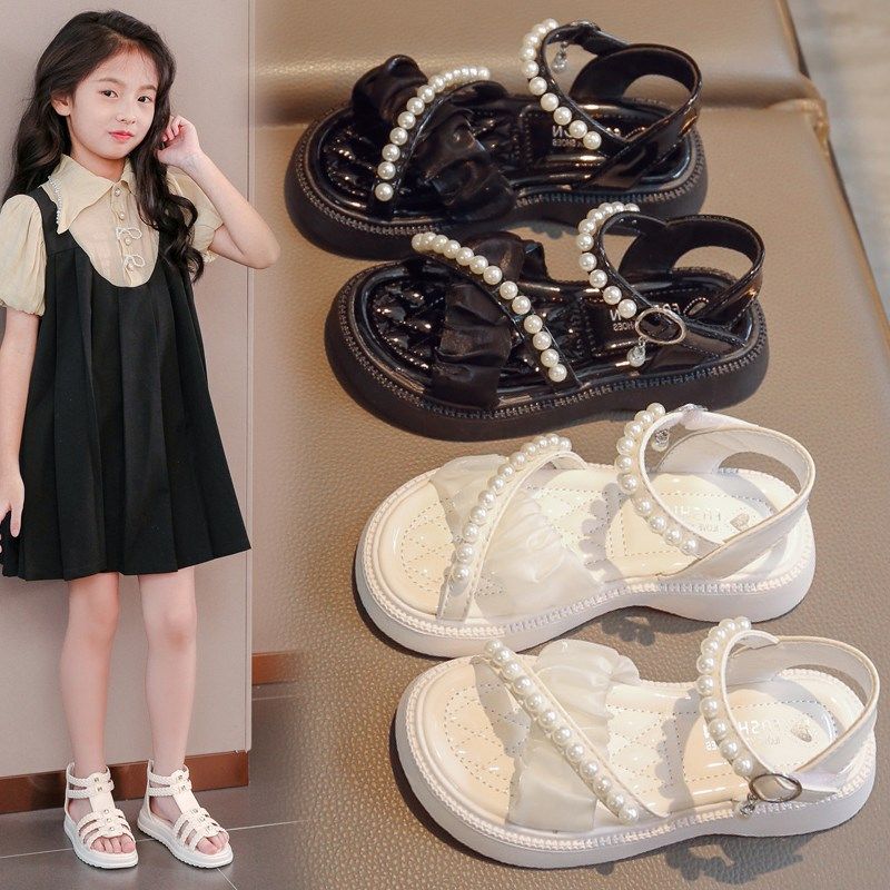 女童凉鞋2022新款夏季儿童鞋子时尚洋气平底珍珠公主鞋宝宝小女孩