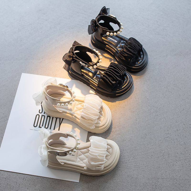 女童礼服皮鞋软底平底珍珠凉鞋夏季新款包头2024洋气韩版公主风潮