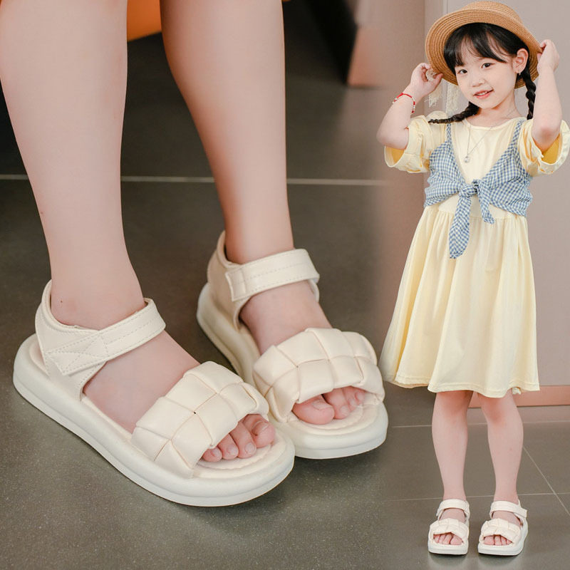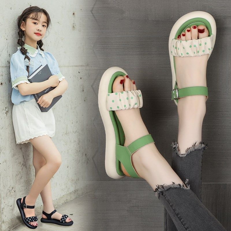 大童女凉鞋公主儿童新款夏学生洋气一字带女童沙滩鞋平底软底运动