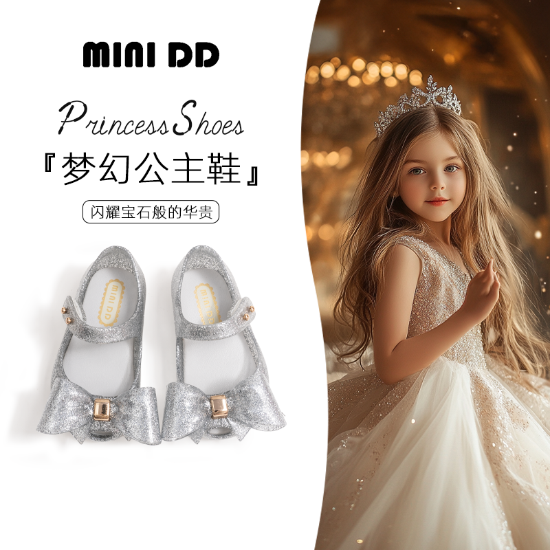 MINIDD儿童凉鞋皇冠蝴蝶结女童平底鞋软底皇冠休闲鱼嘴宝宝单鞋