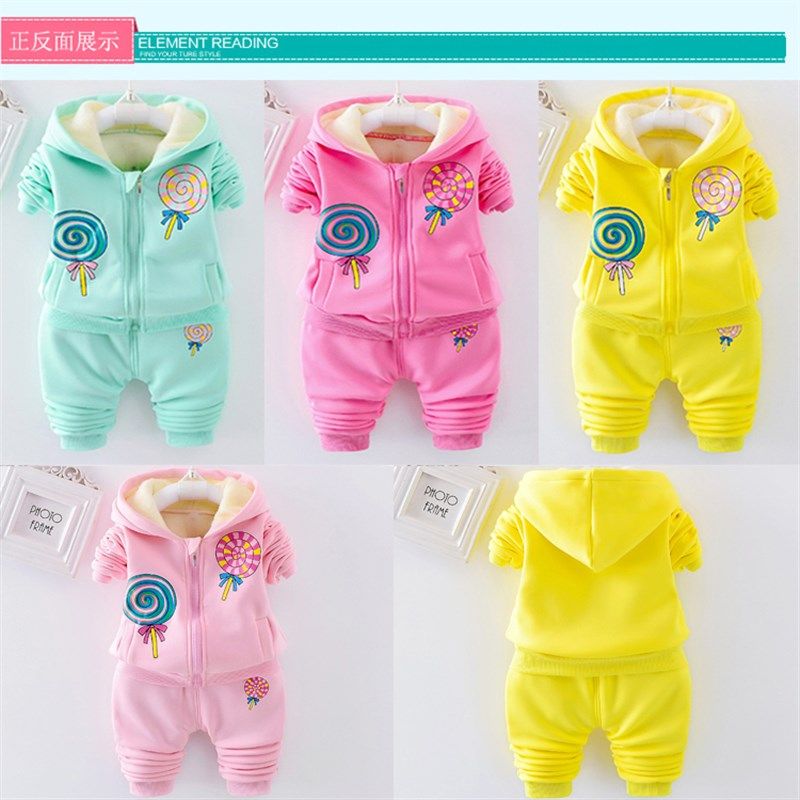 女宝宝加绒春装休闲上衣套装3男童装秋冬装衣服4婴幼儿童2两件套0