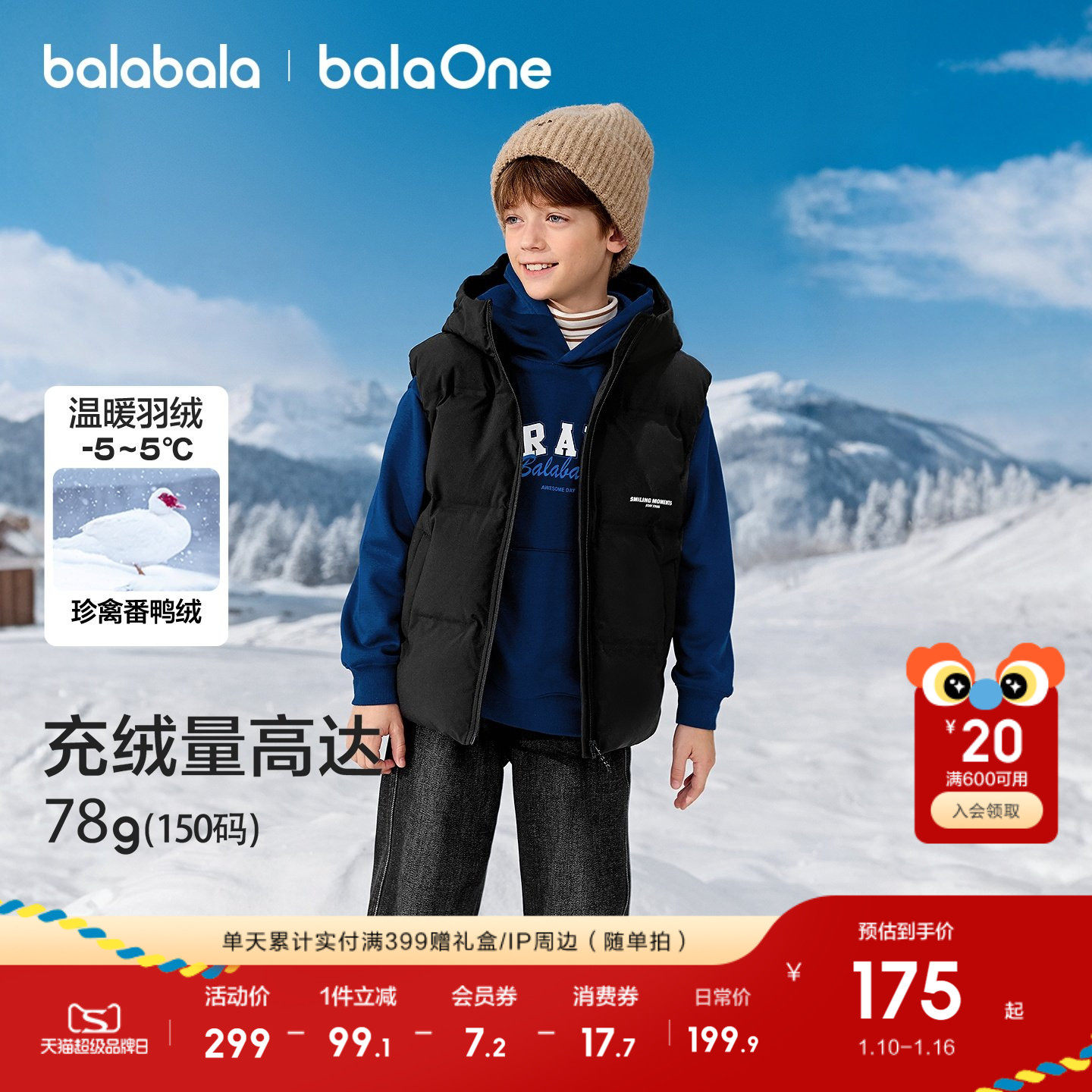 巴拉巴拉童装儿童羽绒马甲女童男童上衣新款2025秋冬装外穿保暖潮