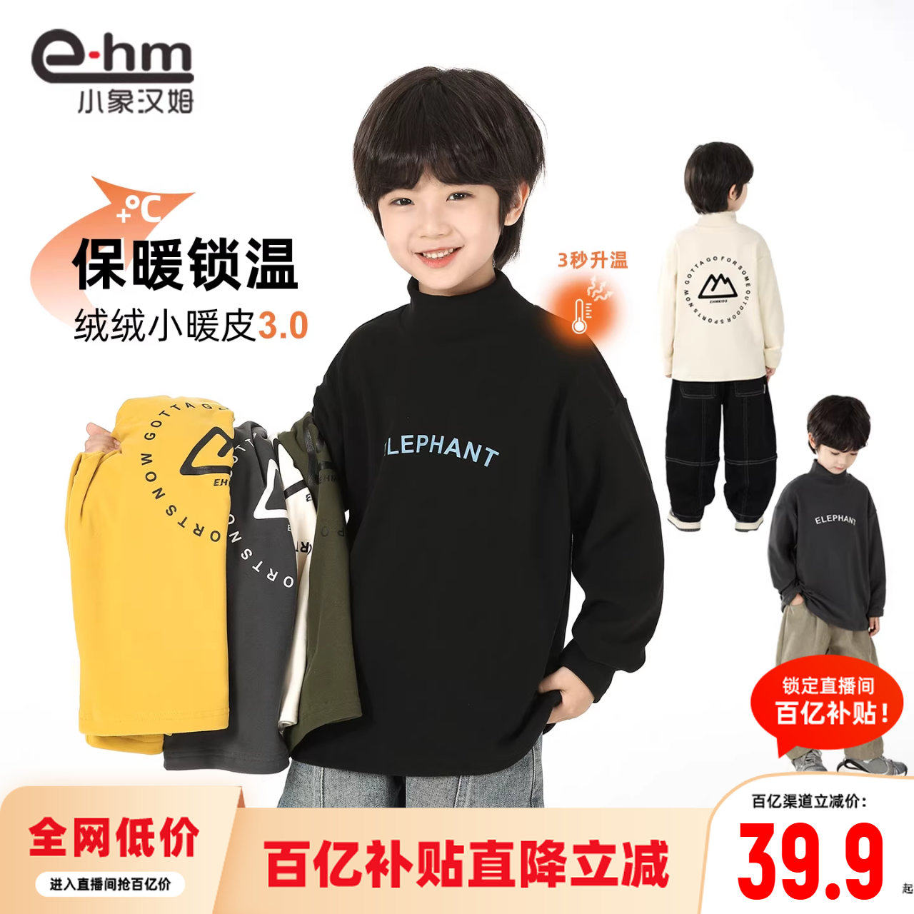 小象汉姆童装男童德绒打底衫儿童秋冬2025新款男孩中大童冬装内搭