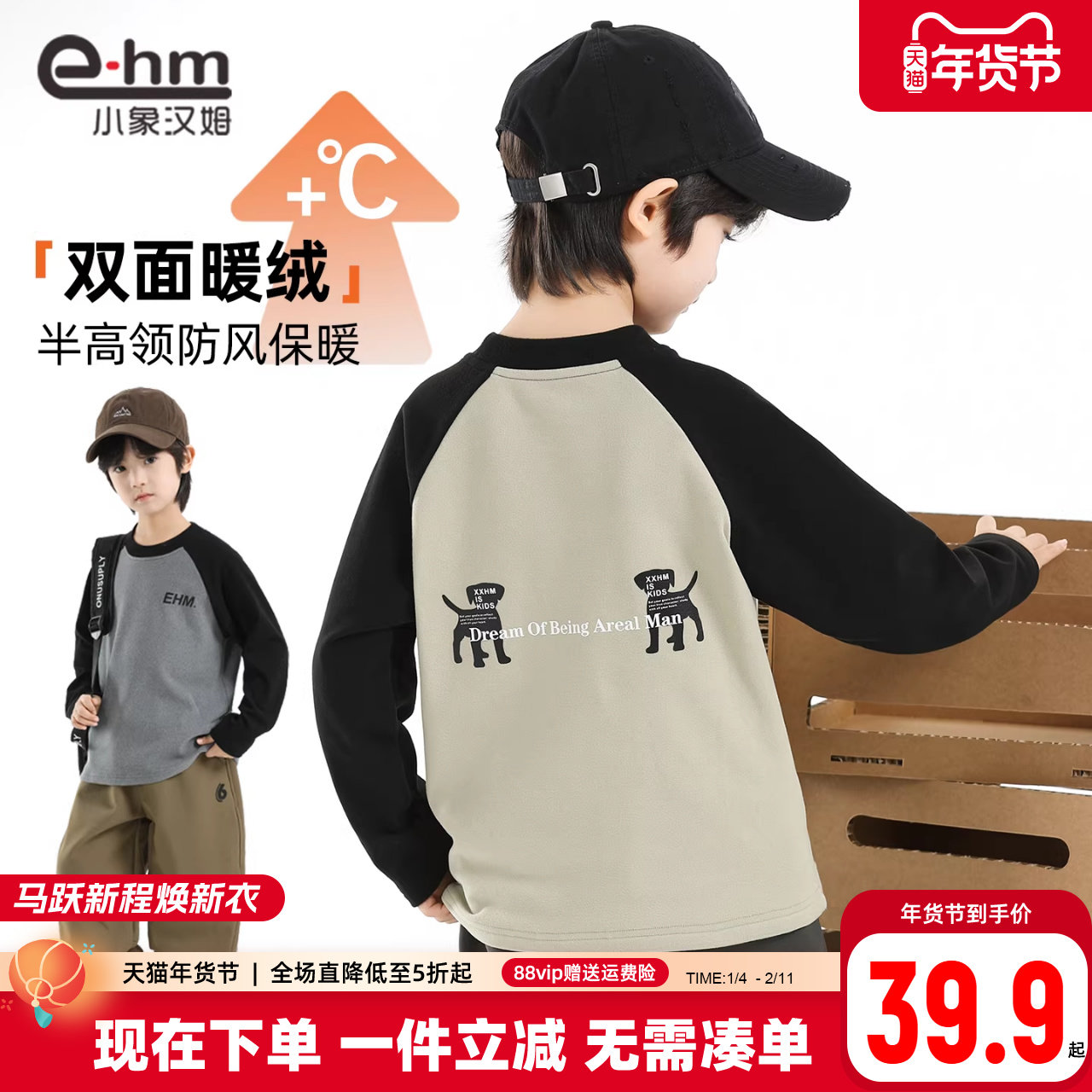 小象汉姆童装男童德绒打底衫儿童卫衣秋冬装2025新款男孩长袖t恤