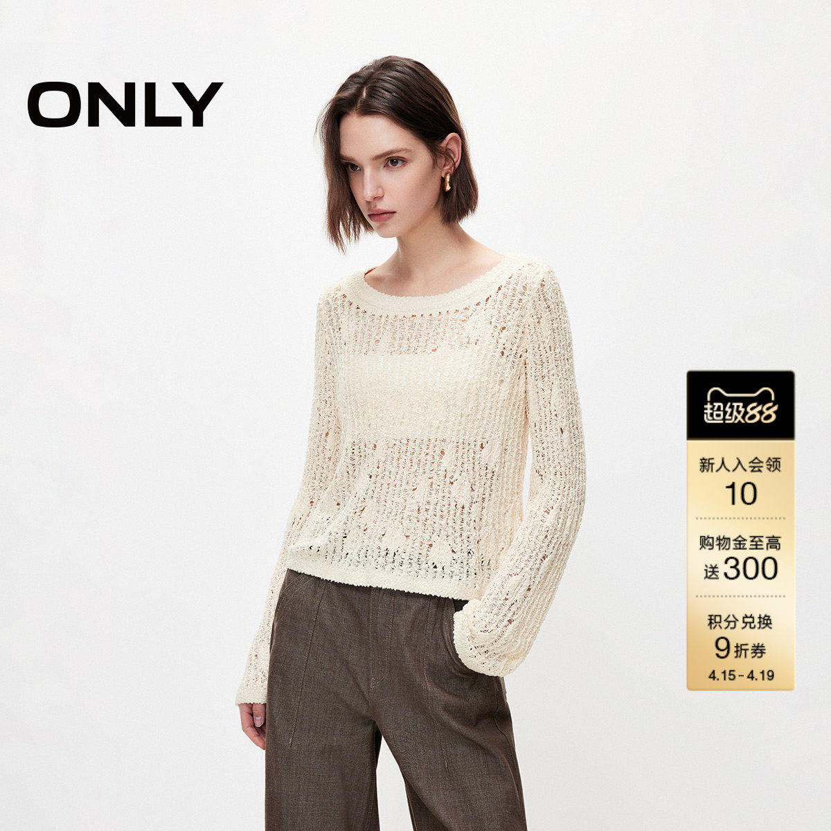 ONLY2026春季新款透气网眼钩织软糯亲肤宽松船领长袖针织衫上衣女
