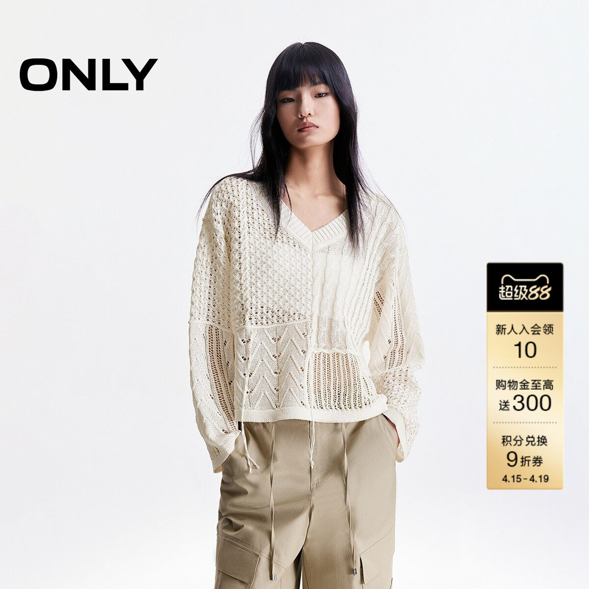 ONLY2026夏季新款舒适落肩透气立体钩花镂空编织长袖针织衫上衣女