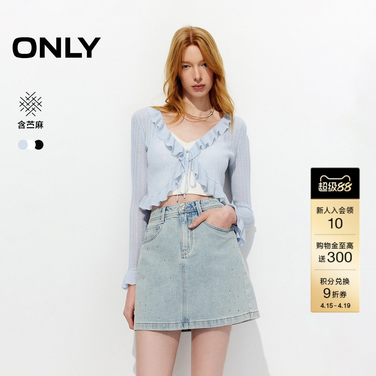 ONLY2026春季新款修身轻薄木耳边装饰V领舒适开衫针织衫上衣女