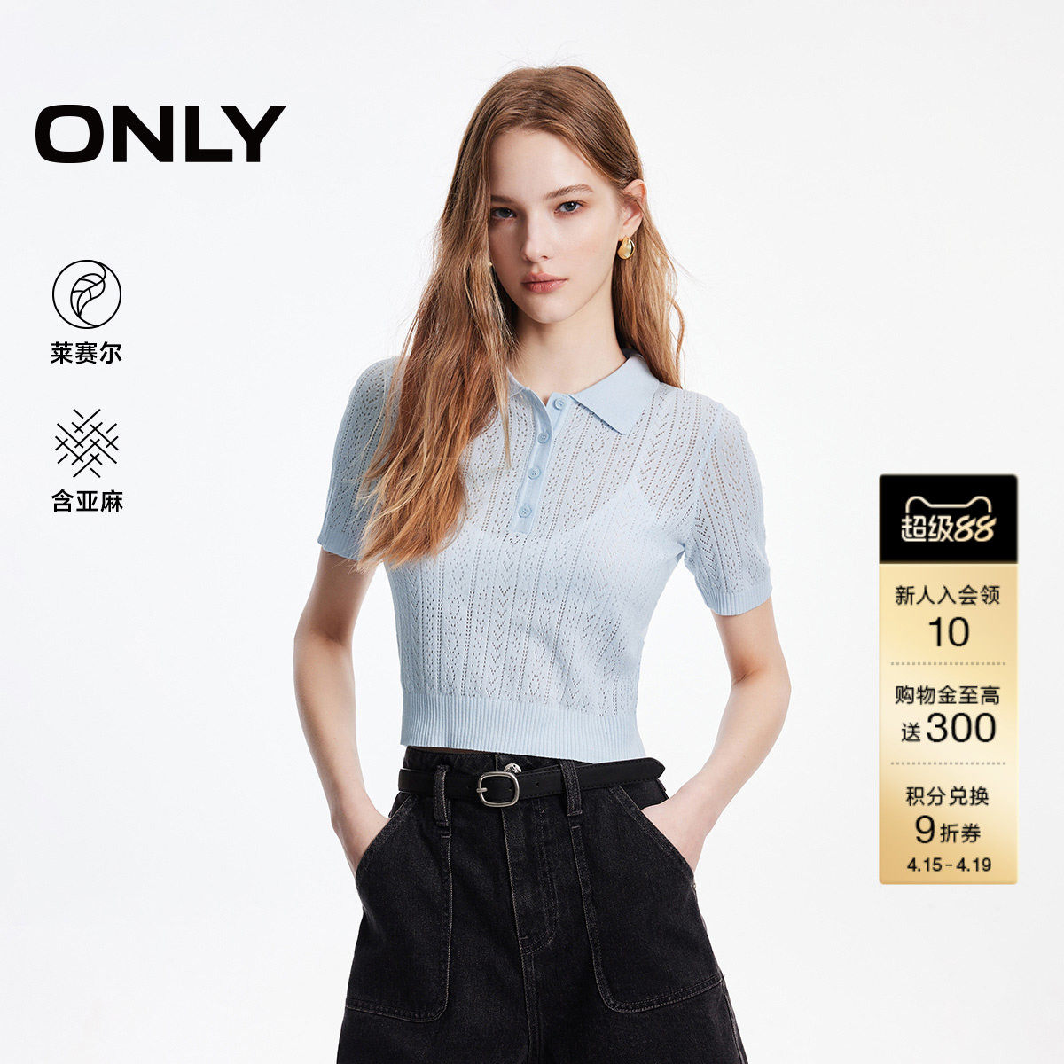 ONLY2026春季新款含莱赛尔提花镂空正肩Polo领短袖针织衫上衣女